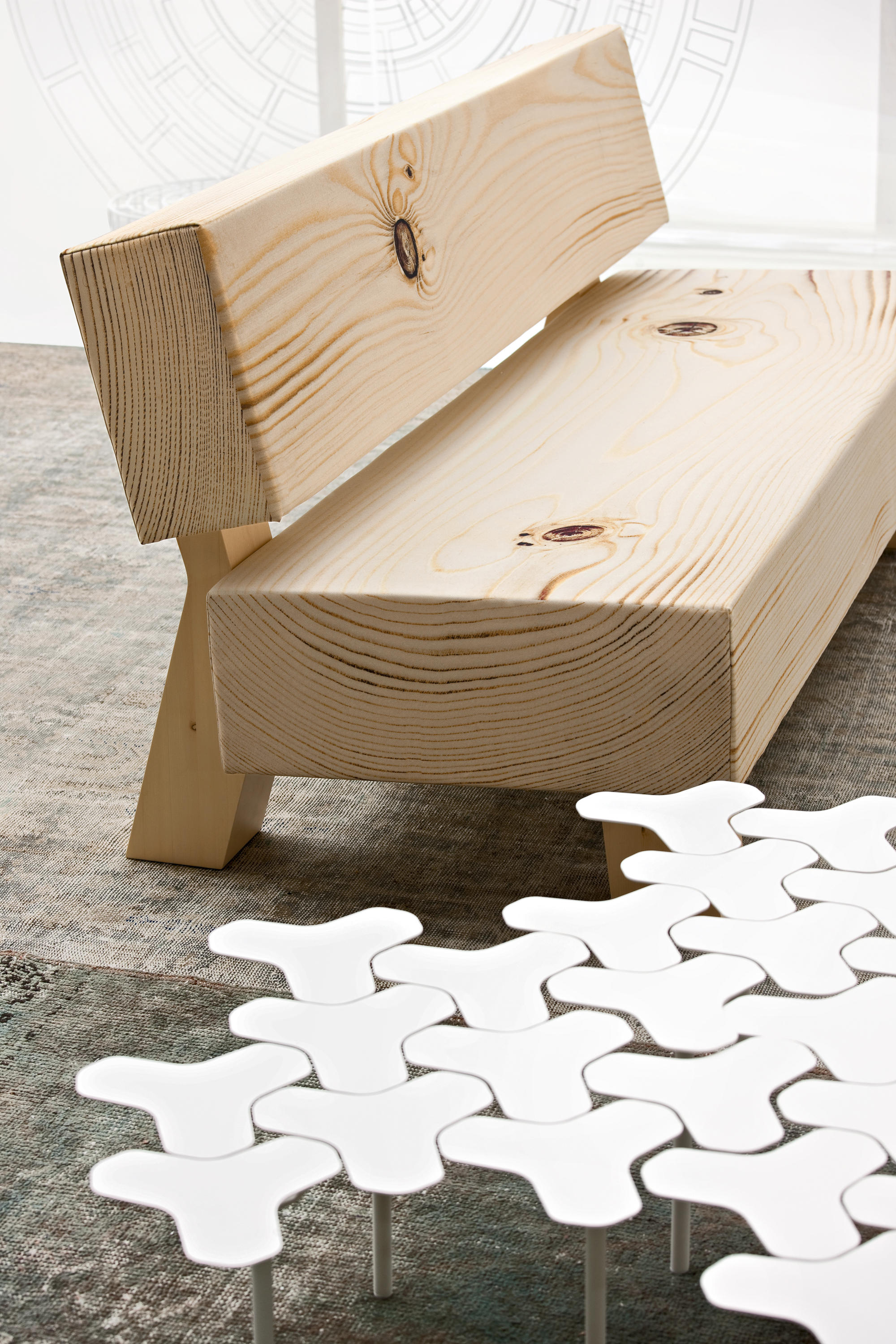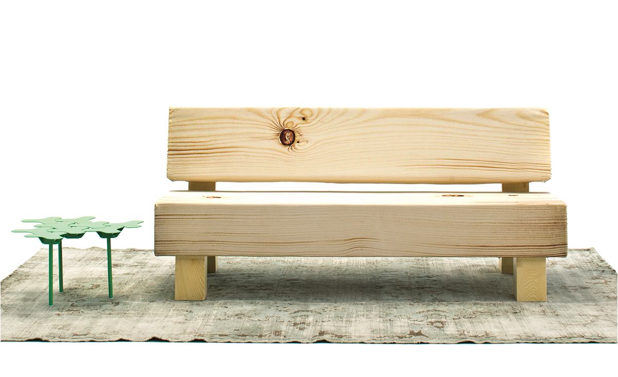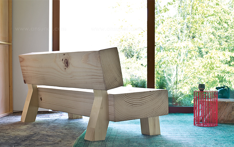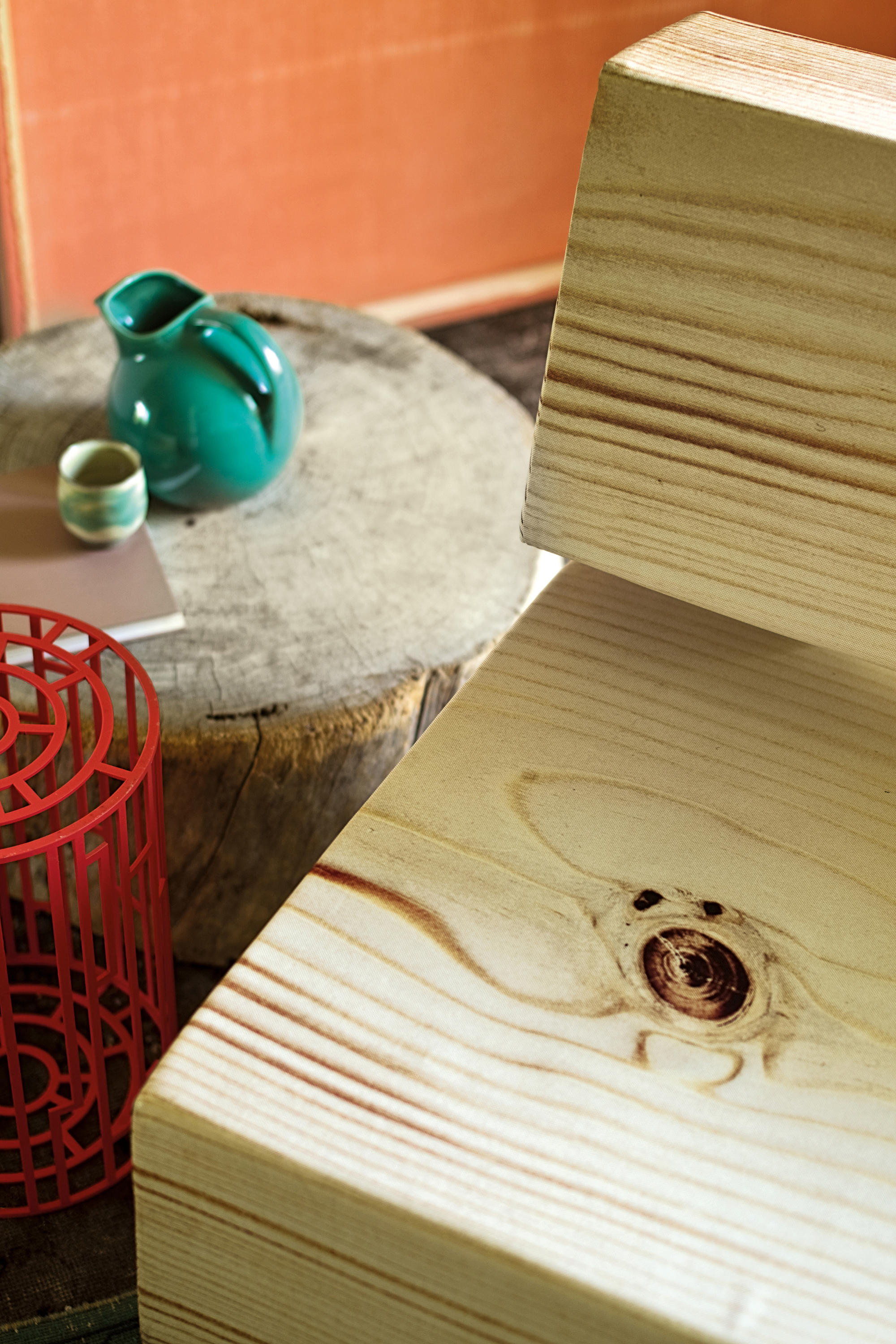触摸它并感到惊讶:木头是柔软的,仅仅是一个超级逼真的数码照片打印的效果。在“树皮”下面是不变形,不同密度的泡沫,而框架是实木的,腿是在松木胶合板上,有可调节的高度滑翔。