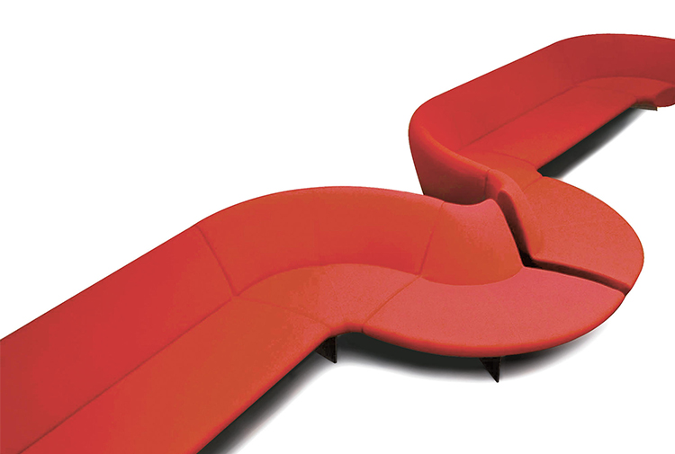 曲线优美,轻盈,极具雕塑感。汤姆迪克森的模块化系统对于等候区和大空间来说是很棒的选择。一个极简主义的系统,它可以适应各种各样的设置,在角落里、在中心区域或者在户外使用。它的名字是完美的,使用防火的聚氨酯火焰使它更适合于公共空间。钢脚的高度是可调的。