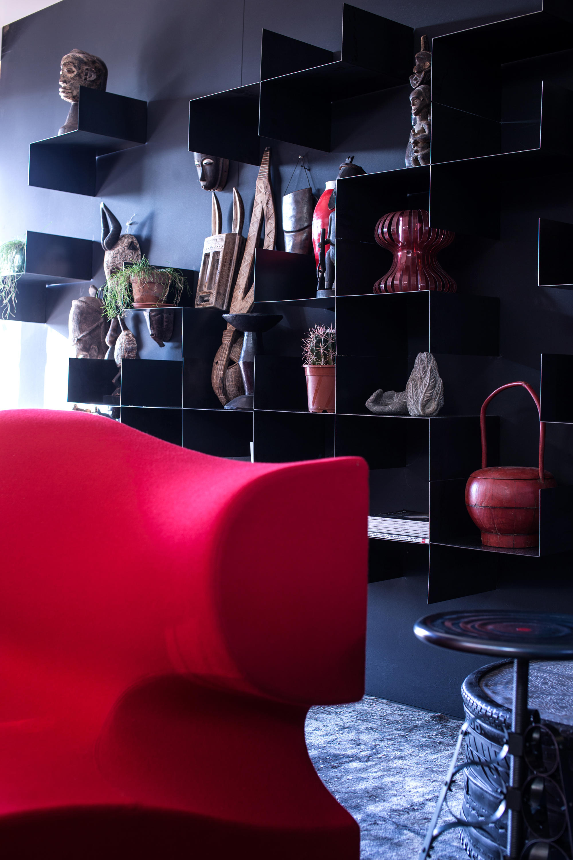 一种切割的金属薄片,裸露的,没有装饰的。它在构图上,在结合的自由中,把自己区分开来。最终形成一个不完整的格栅,通过切割来分解。这是一个金属工人认真工作,是一种机械加工的残留物,它是一个在残酷的美学和诗歌之间的废弃行业的快照。Z-shelf,连同3个修女凳子和滑翔机沙发,都是Americana的一部分,这是一个异构的收藏,通过使用钢铁来庆祝概念性的作品,作为设计实践的一种表现,同时拒绝既定的惯例和标签。