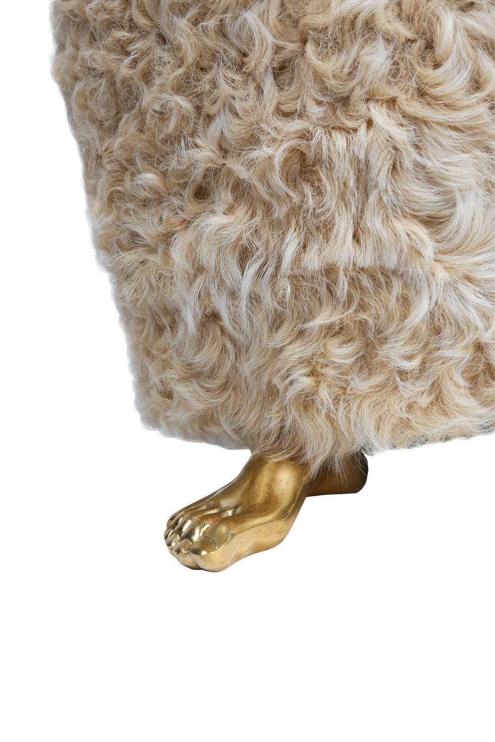 脚凳是由安装在实心黄铜铸脚上的豪华羊毛皮制成的。 意想不到的醒目,它是一个完美的奥斯曼或小巧的矮墩或妆凳。