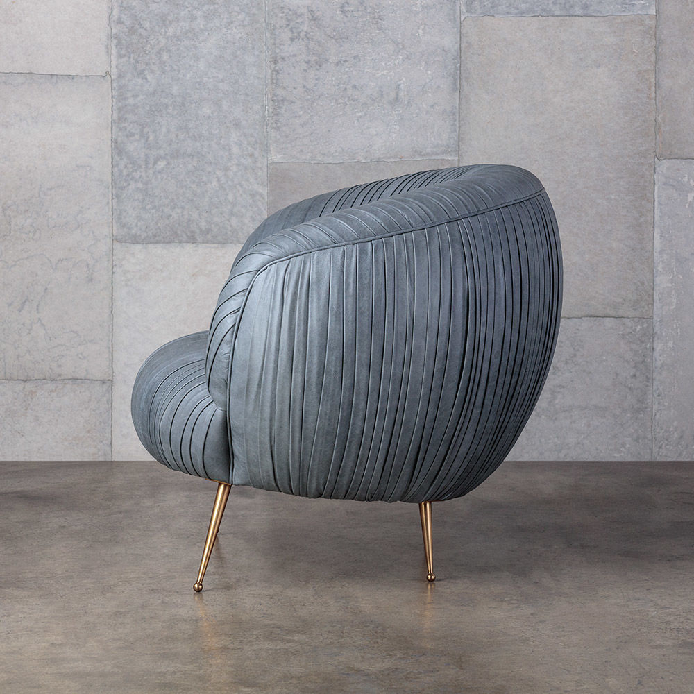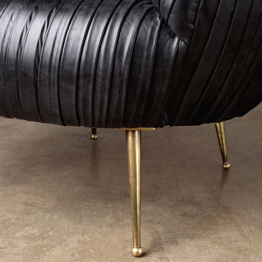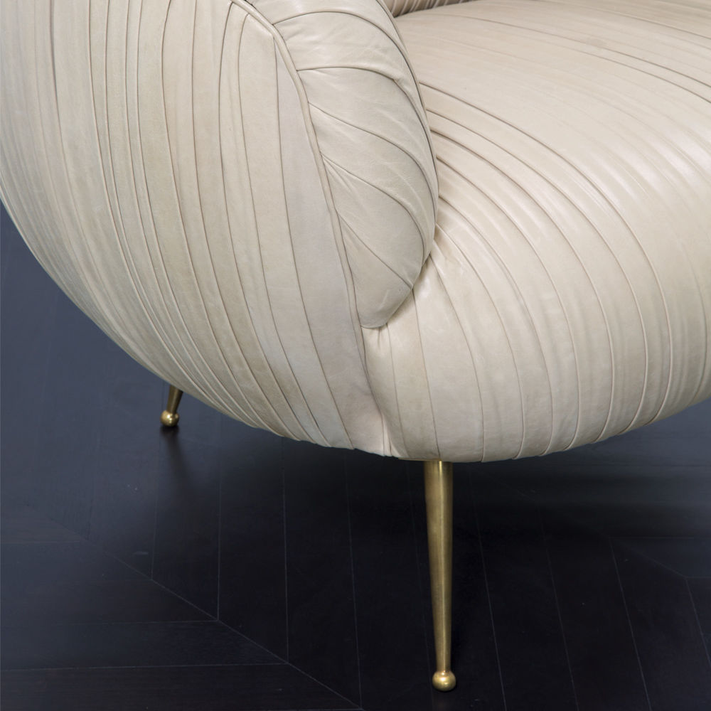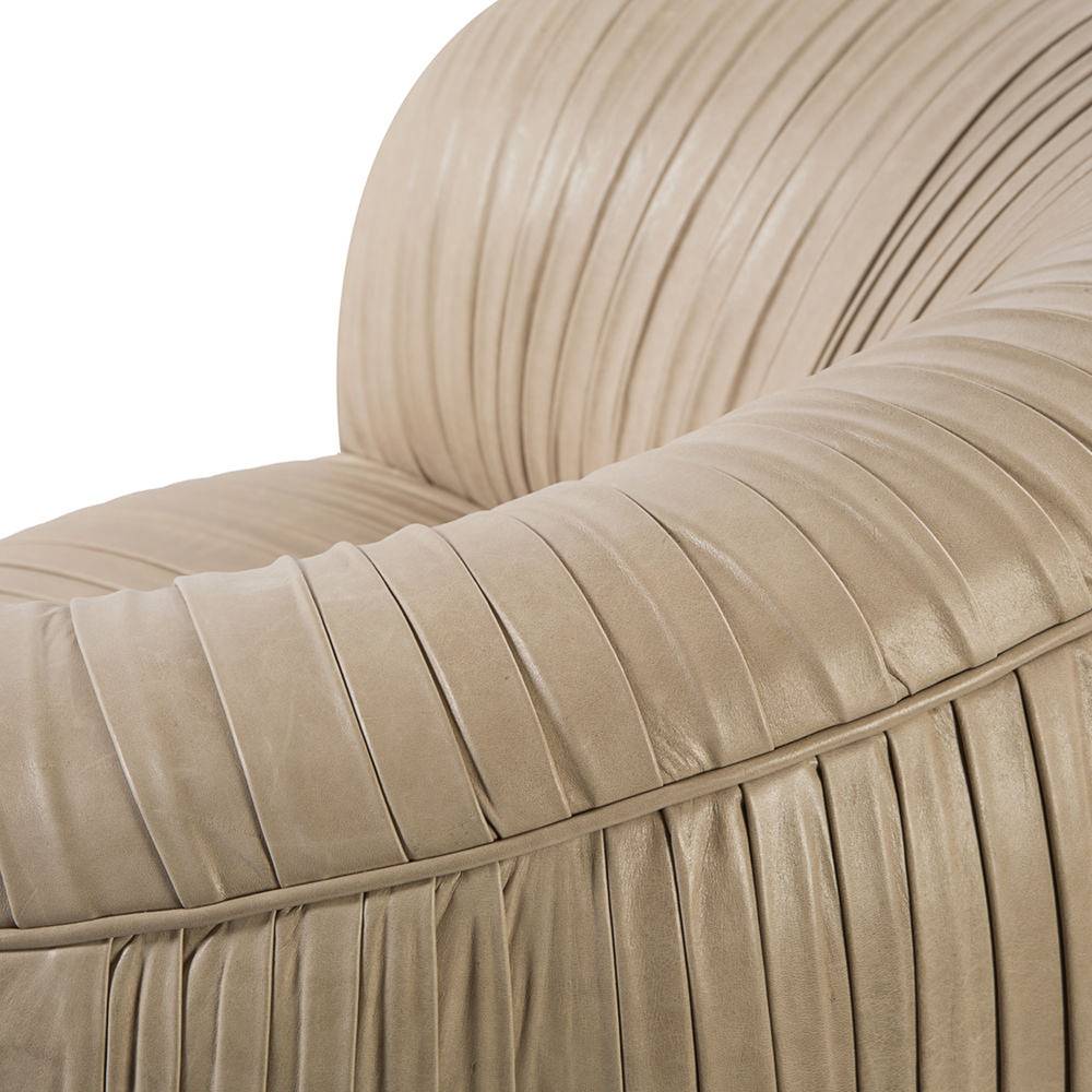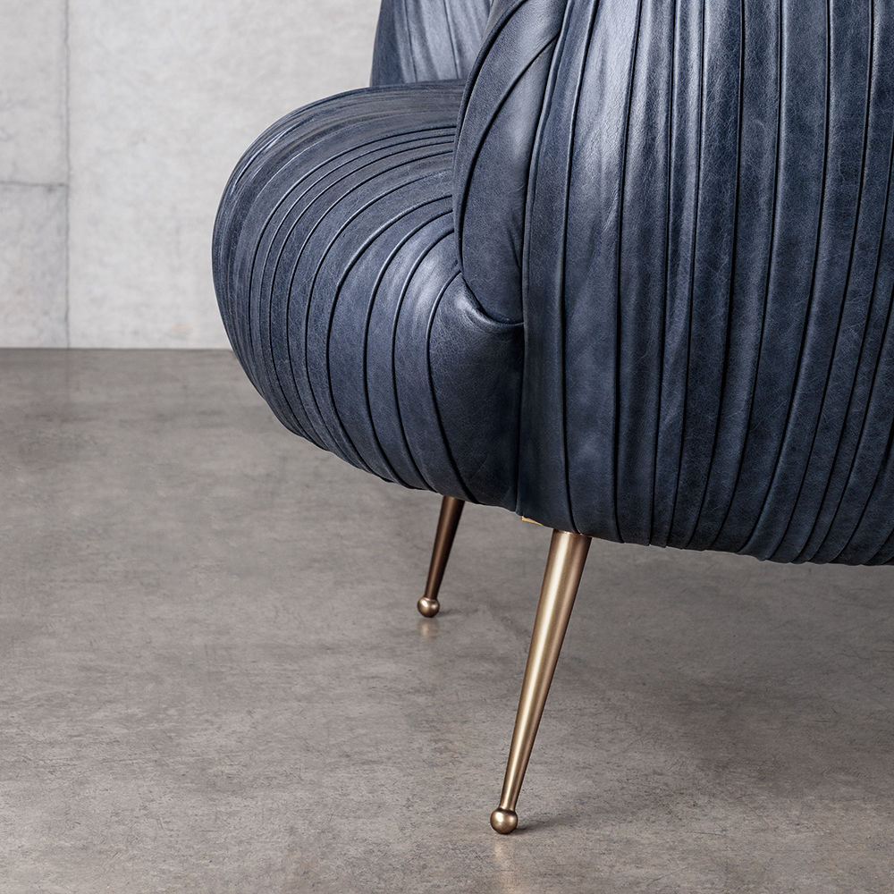 我们的标志性黄油褶皱皮革突出显示了这一标志性作品的戏剧性曲线。 手工制作的硬木框架采用双向销钉,配有8向手动弹簧,可延长使用寿命和性能。