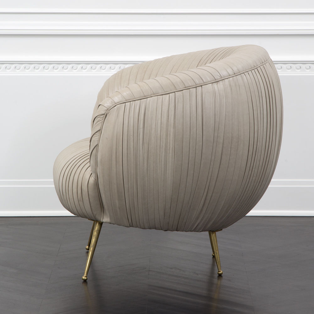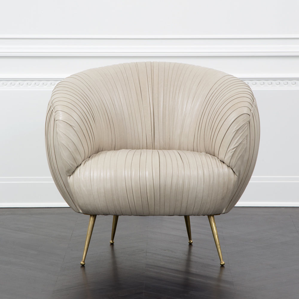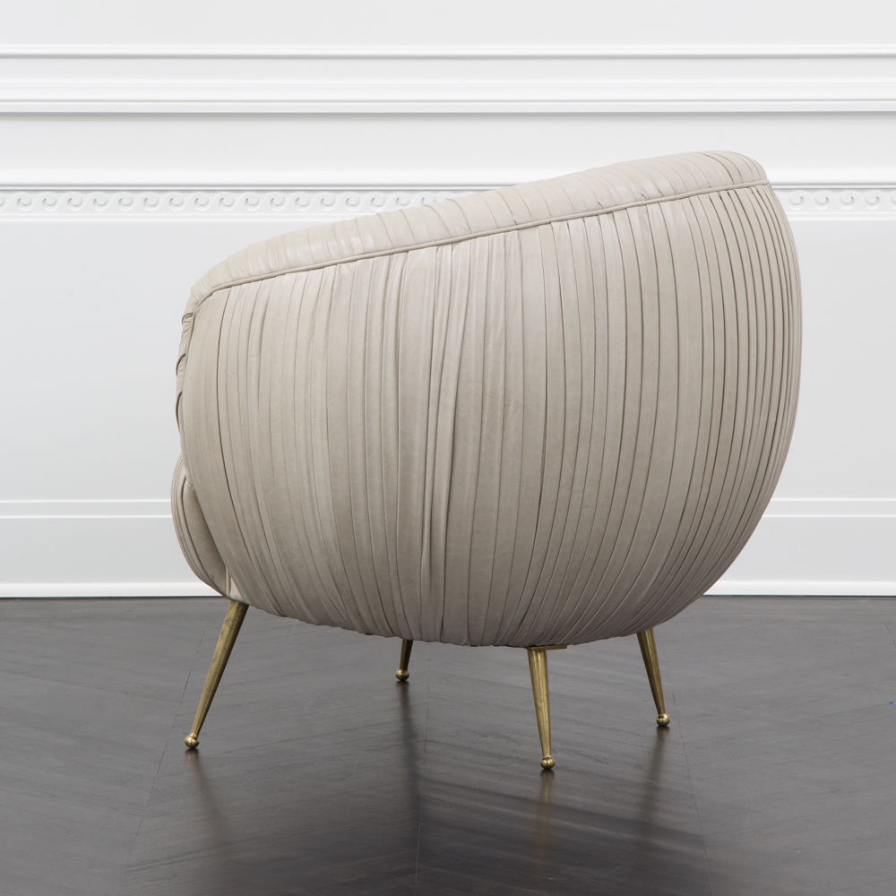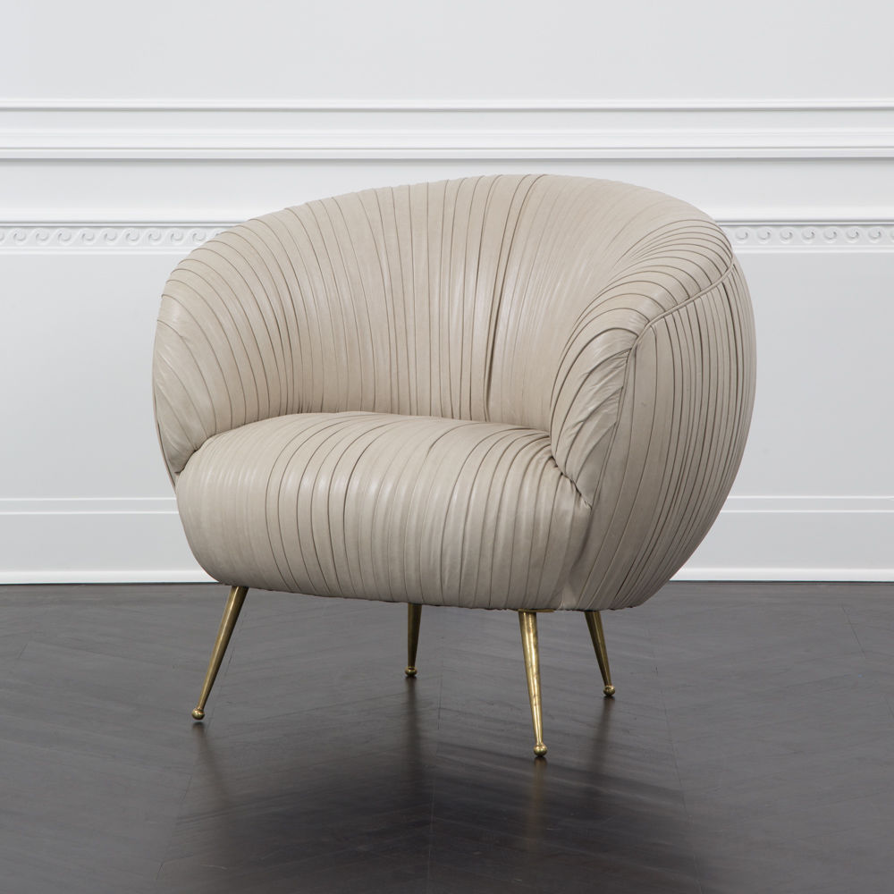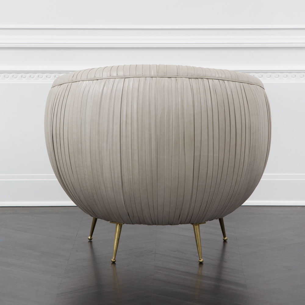 我们的标志性黄油褶皱皮革突出显示了这一标志性作品的戏剧性曲线。 手工制作的硬木框架采用双向销钉,配有8向手动弹簧,可延长使用寿命和性能。