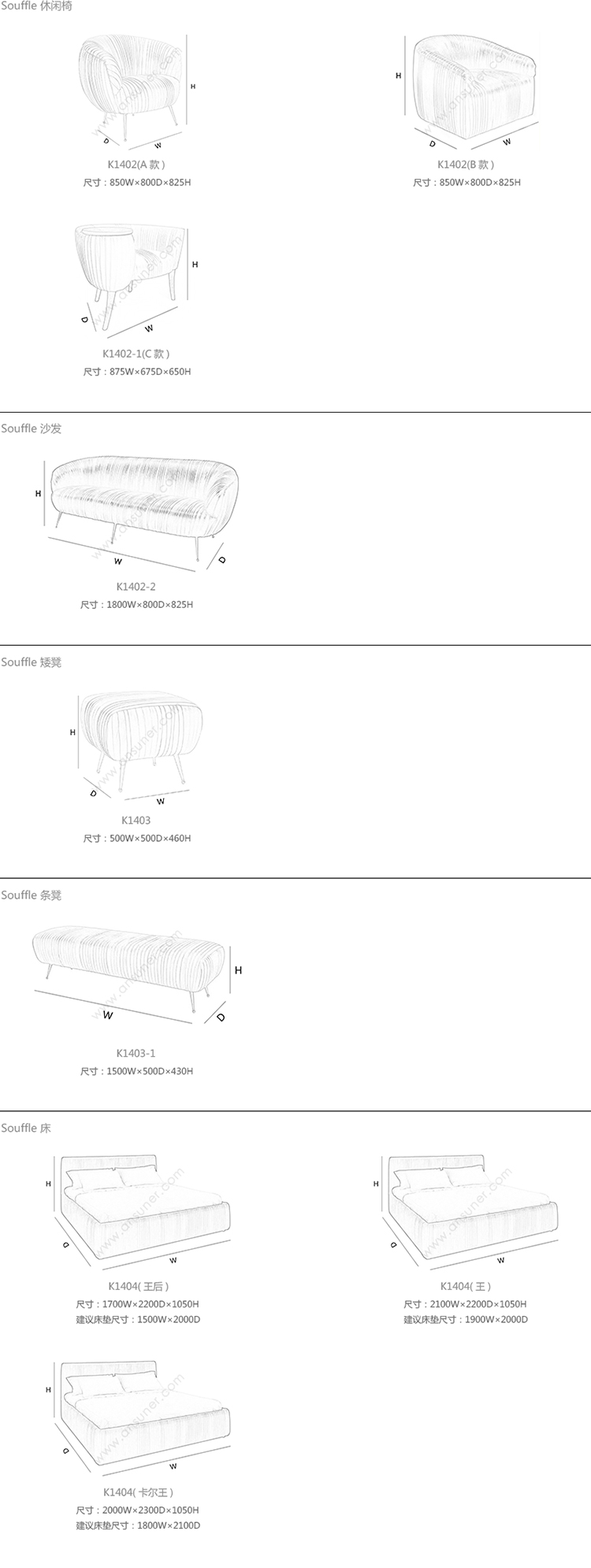 Souffle 休闲椅 系列尺寸/示意图
