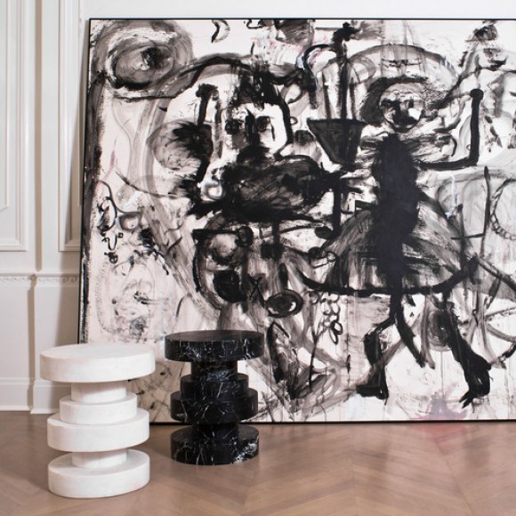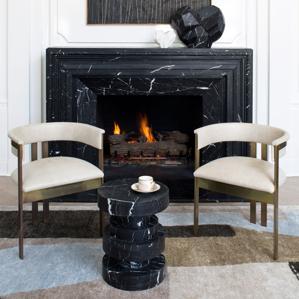 Apollo凳子,堆叠的大理石,非常适合户外或室内座位,鸡尾酒桌或边桌,或雕塑装饰件。 黑色大理石经过磨光和密封,以增加丰富感。