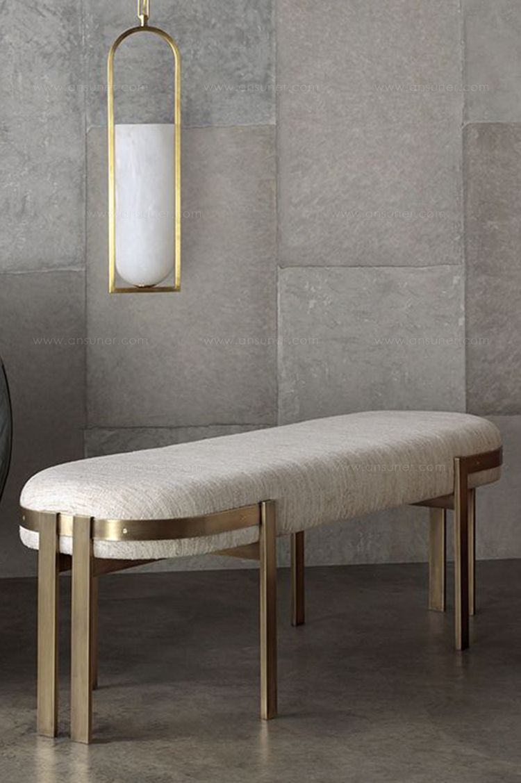 标志性的Elliot长凳结合了简洁的线条和经典的白话。 这款软垫长凳采用成对的黄铜棒料腿,饰有抛光黄铜或油擦黄铜饰面。 座椅有各种精选面料和皮革可供选择。
