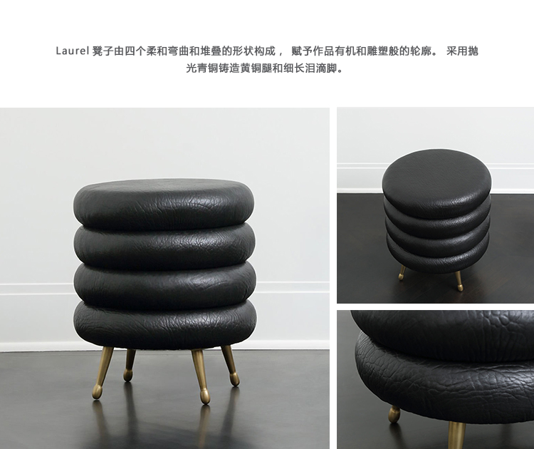 Laurel凳子由四个柔和弯曲和堆叠的形状构成,赋予作品有机和雕塑般的轮廓。 采用抛光青铜铸造黄铜腿和细长泪滴脚,这种低座位可选择精选面料和皮革。
