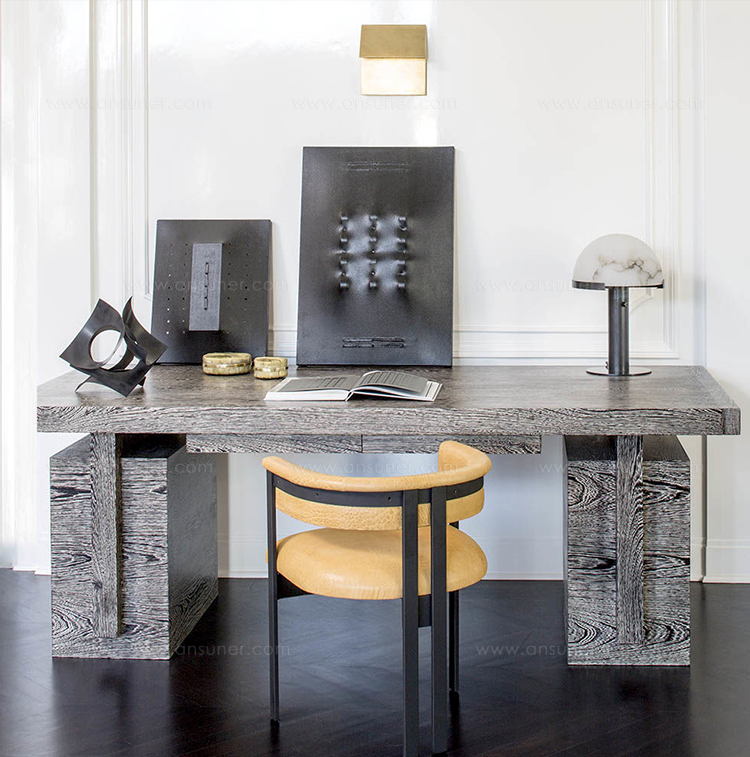 优雅的Elevado书桌具有简约的建筑轮廓,采用我们的标志性象牙色和拉丝Wenge饰面。 宽敞的桌面位于Wenge纹理框架下方,有一对精致的亚麻衬里抽屉,配有铅笔托盘细节和木质滑动装置。