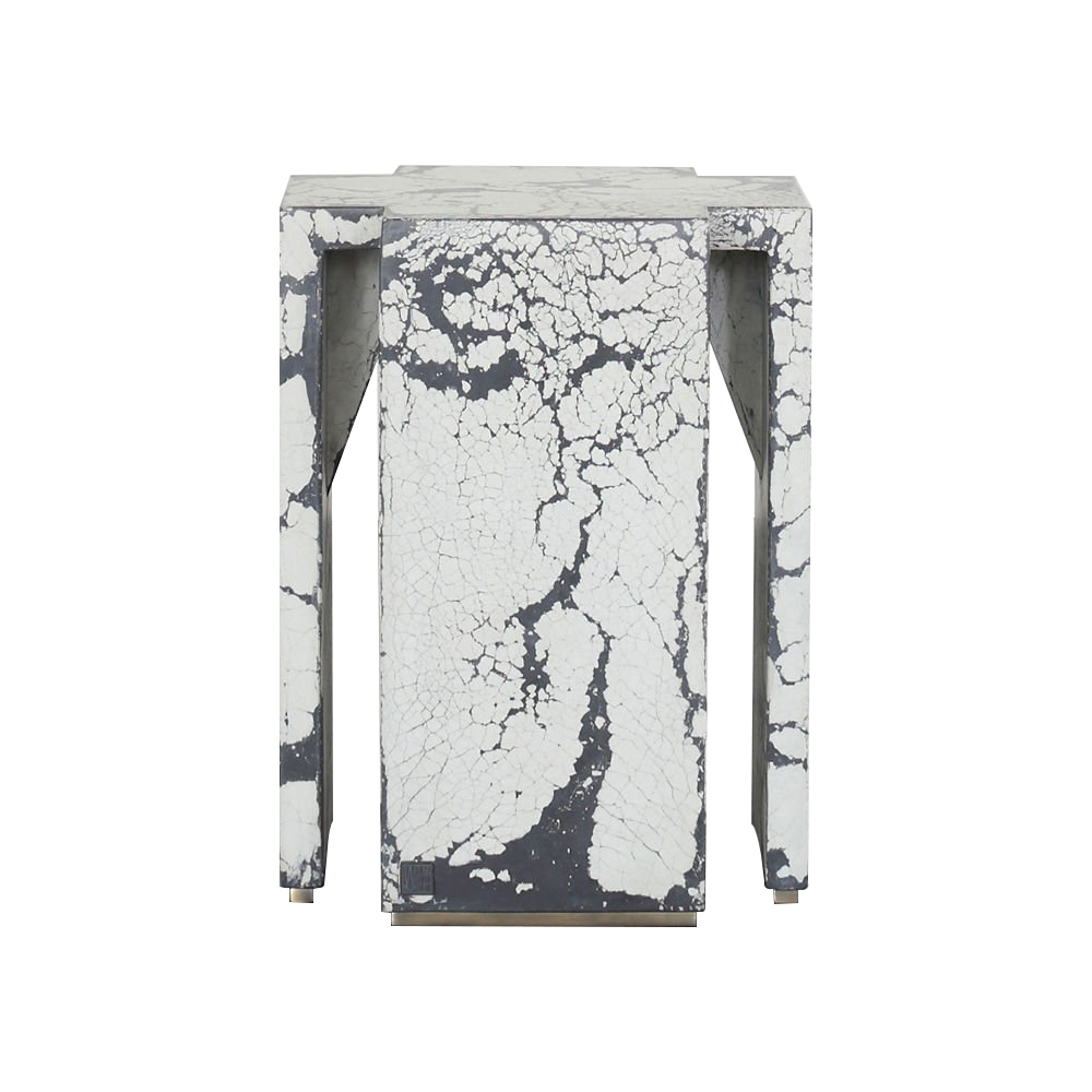 这个现代和建筑边几是手工浇筑的混凝土。 混凝土中充满了颜料,使每种形状都具有完全独特的色偏。 每个十字形腿都终止于坚固的抛光黄铜脚。 每张桌子的一面都印有Kelly Wearstler标志。