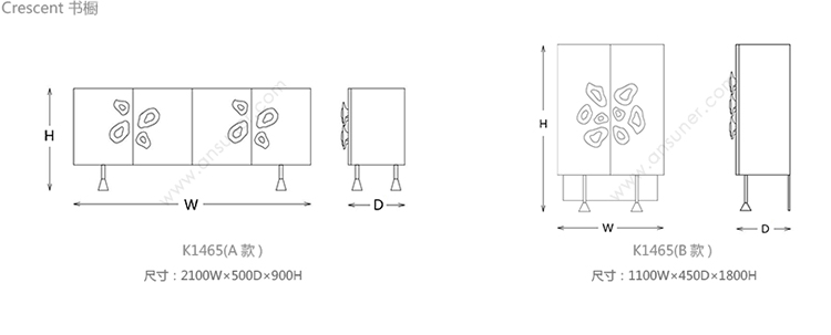 Crescent 书橱 系列尺寸/示意图
