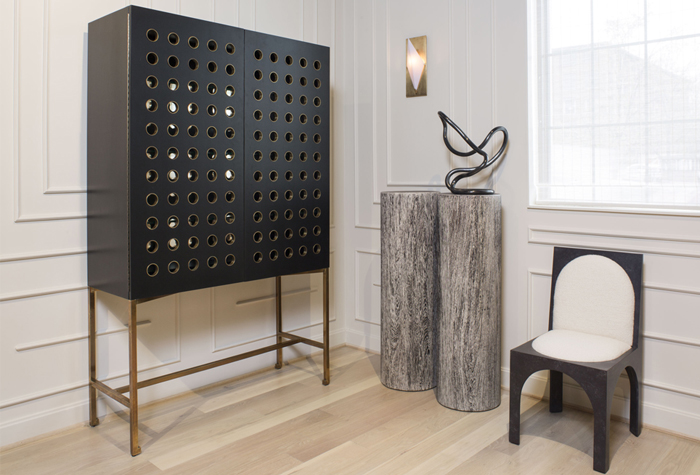 灵感来自Kelly对建筑和雕塑形式的热爱,这款独特的餐椅采用罗马式拱形腿,手工涂抹石膏。 紧凑的软垫座垫和靠背由Kelly手工挑选的一系列面料和皮革提供。