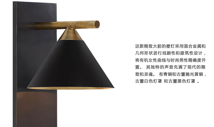 这款精致大胆的壁灯采用混合金属和几何形状进行戏剧性和建筑性设计,将有机女性曲线与时尚男性精确度并置。 其独特的声音充满了现代的精致和灵魂。 有青铜和古董抛光黄铜,古董白色灯罩和古董黑色灯罩 。