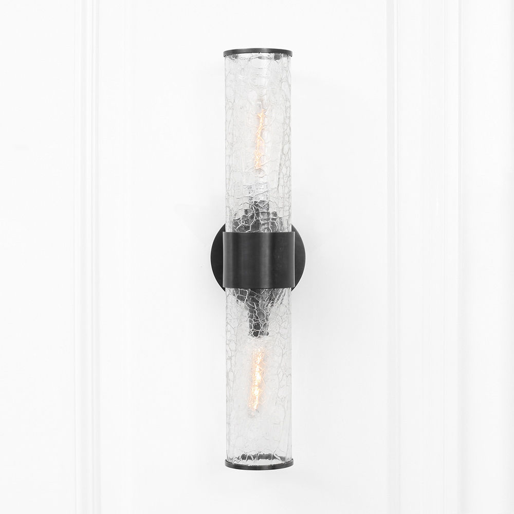 Liaison壁灯以其干净的建筑金属细节和破碎玻璃的动态美感,模糊了现代和经典的线条。 该壁灯适用于室内和室外空间,可提供古董抛光黄铜,青铜和抛光镍。
