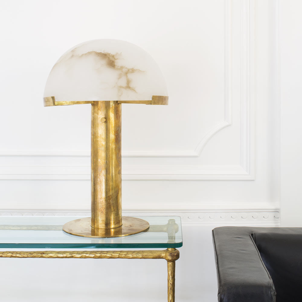 此系列采用雪花石膏和奢华金属。 有机雕刻的雪花石膏片,镶嵌在丰富的天然青铜色的枝条中,具有诗意,配对的奢华,易于提炼。 有古董抛光黄铜和青铜与雪花石膏。