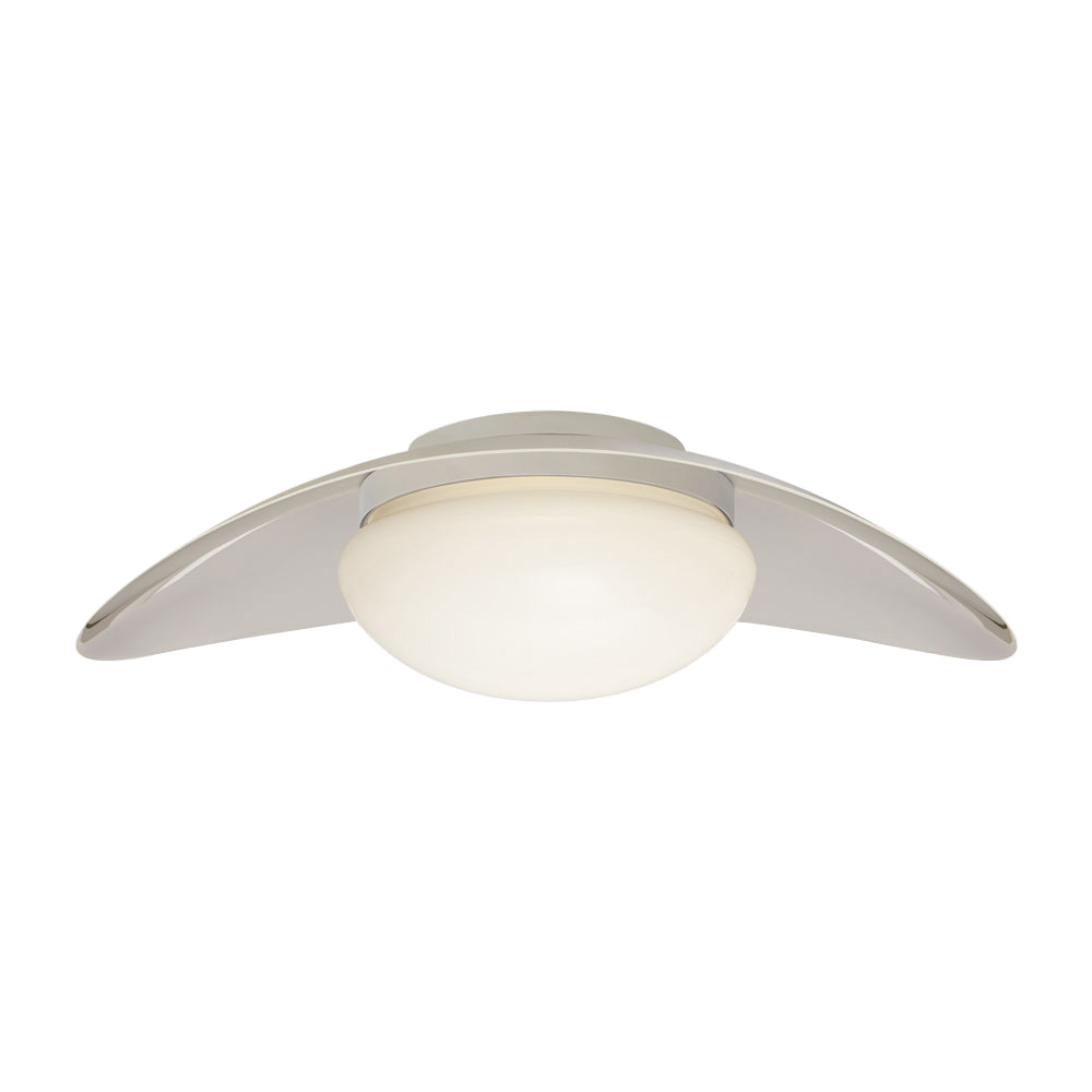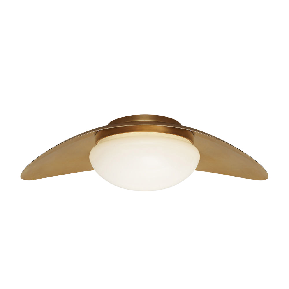 Nouvel中型吸顶灯极小而大胆,突出了混合材料和曲线形式的并置。 这款吸顶灯有古董黄铜,抛光镍或青铜和黄铜的组合,每个都有白色玻璃球。 适用于潮湿场所。