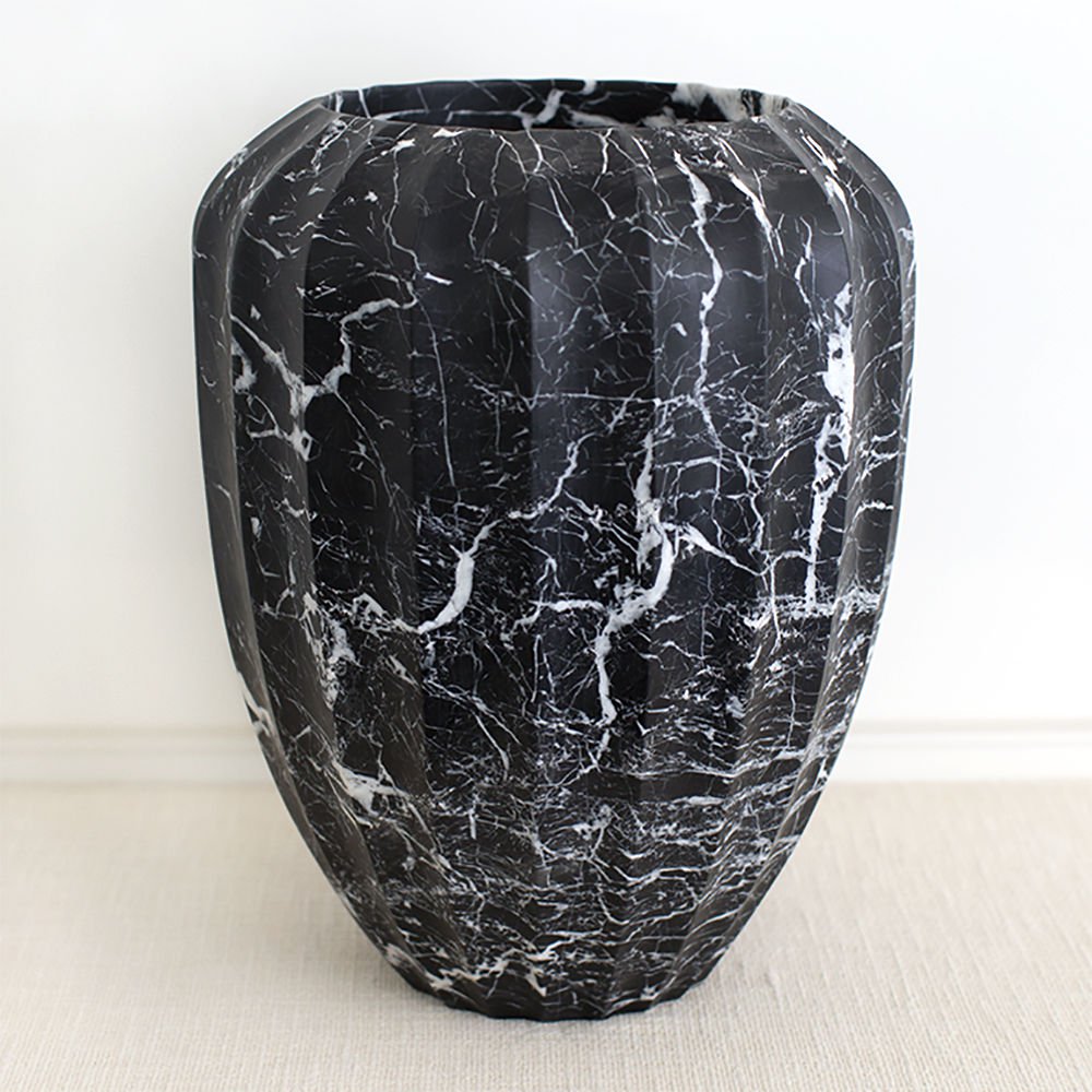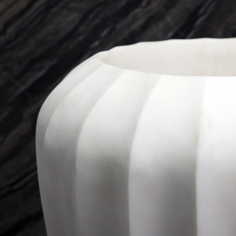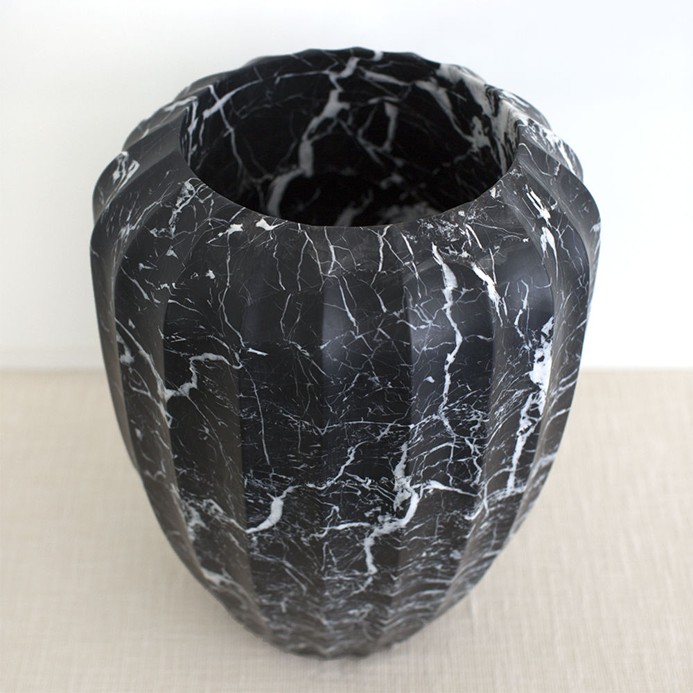 经典的手工雕刻凹槽大理石花瓶是一款优雅而富有戏剧性的作品,可容纳鲜花或独立单品。 这款实心大理石花瓶有两种尺寸可供选择。