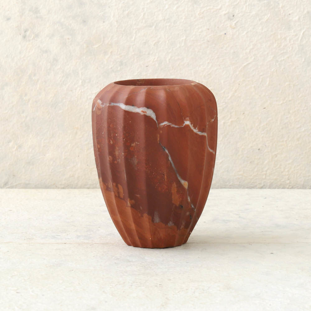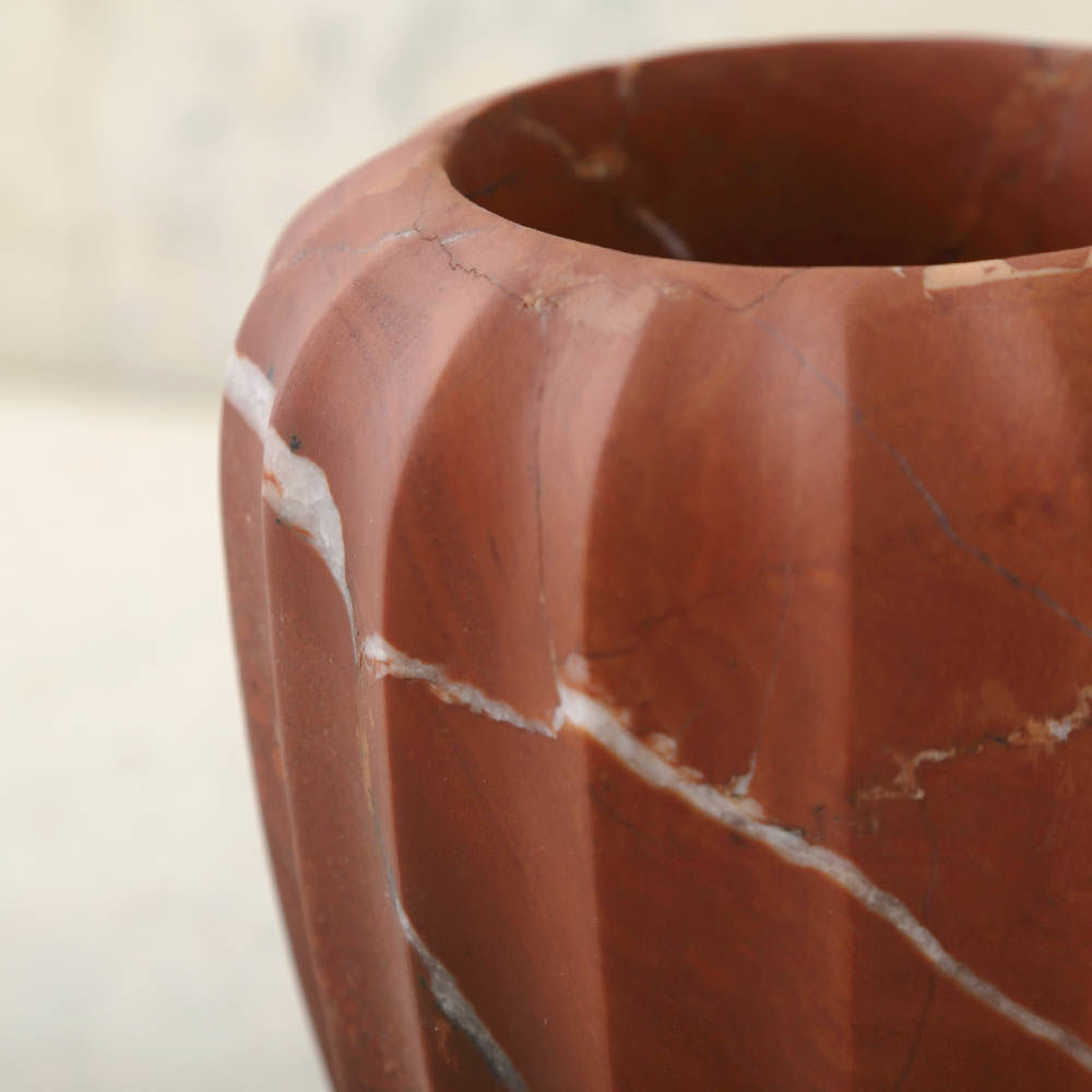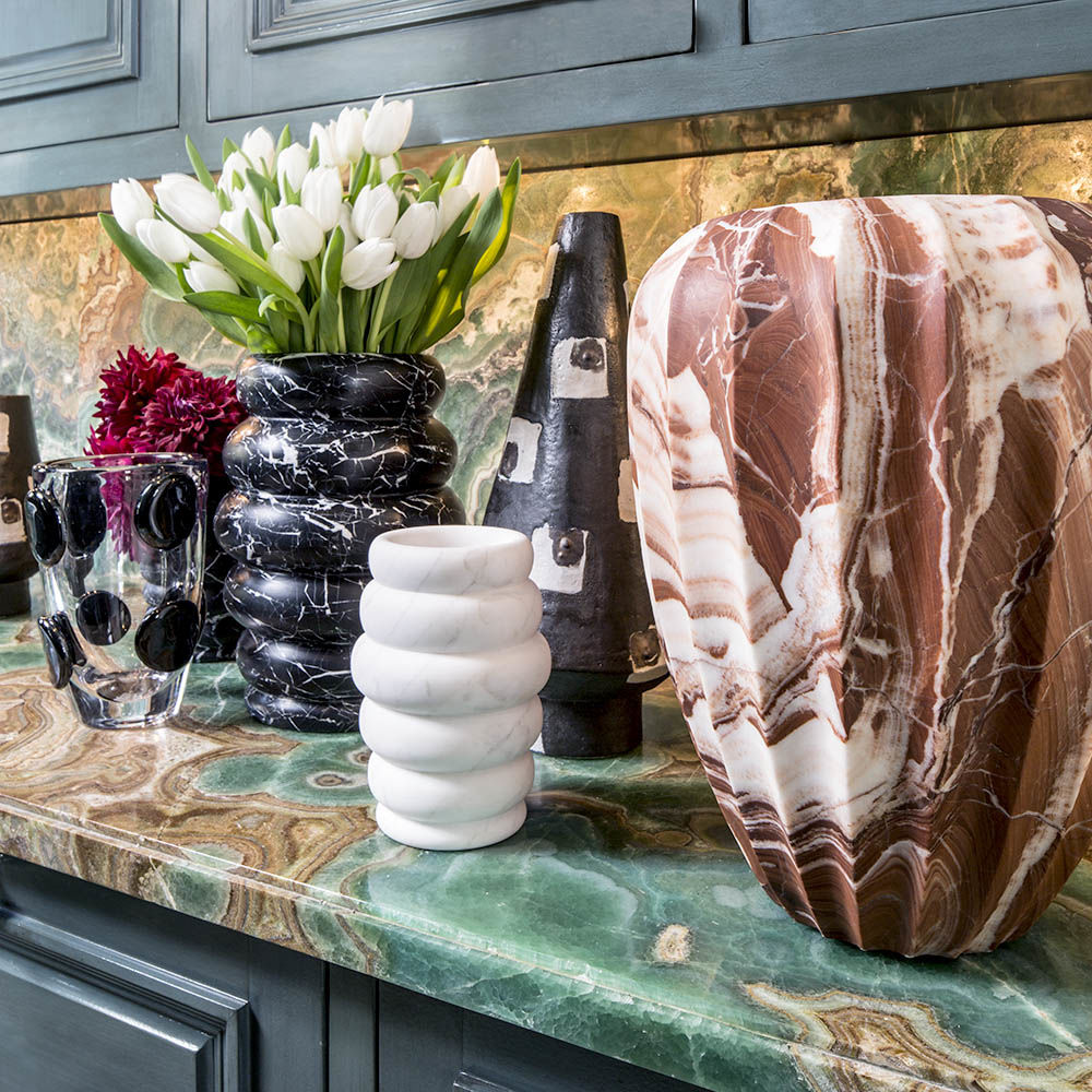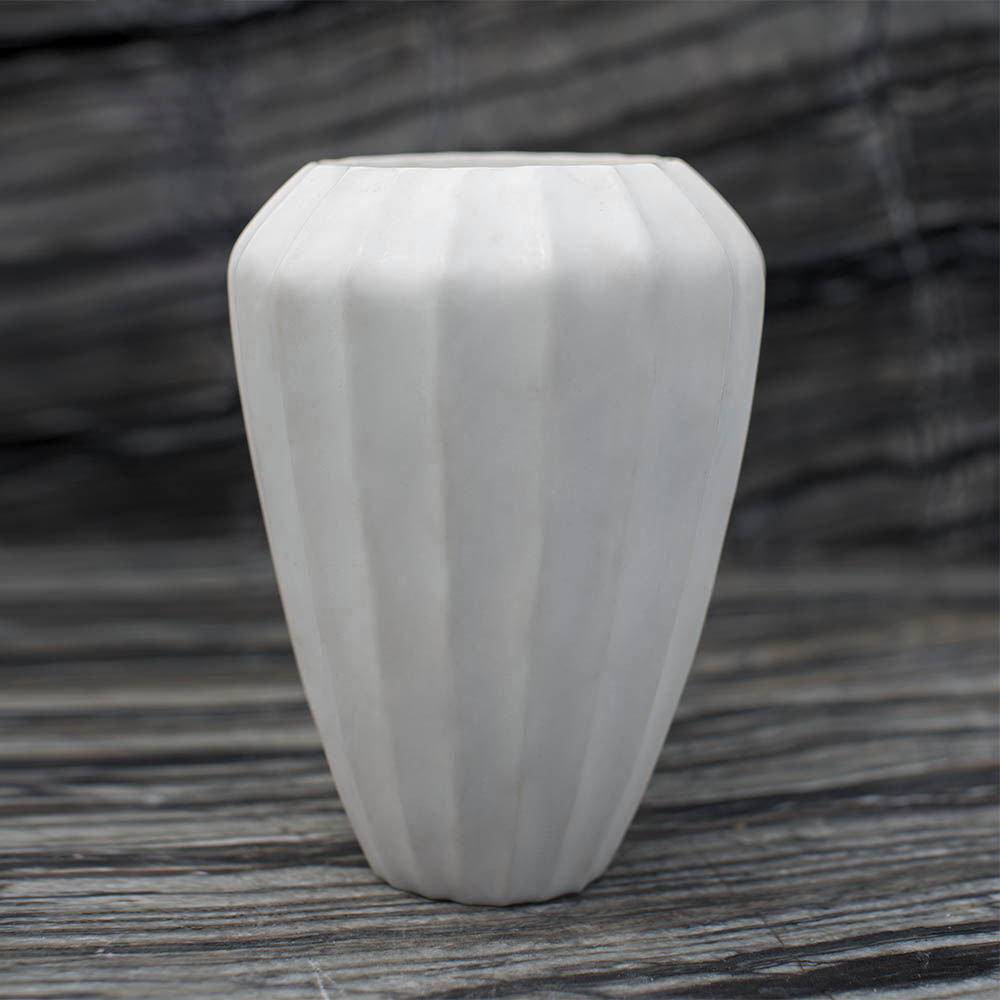 经典的手工雕刻凹槽大理石花瓶是一款优雅而富有戏剧性的作品,可容纳鲜花或独立单品。 这款实心大理石花瓶有两种尺寸可供选择。