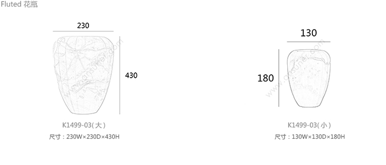 Fluted 花瓶 系列尺寸/示意图
