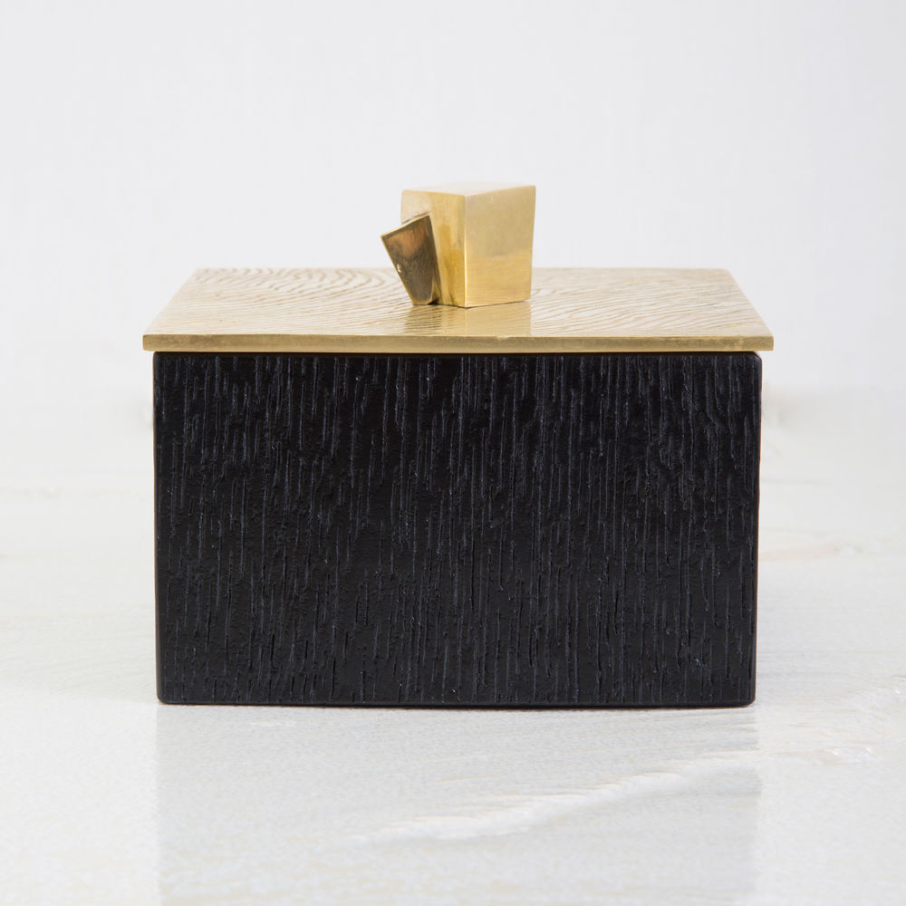 凯利对郁郁葱葱的加利福尼亚海岸线的热爱启发了这款手工雕刻的天然青铜和黑色橡木首饰盒,使其成为梳妆台或床头柜的深情选择。 把手由天然黄铁矿铸成青铜。 其柔软的皮革内饰是特殊纪念品的奢华场所。