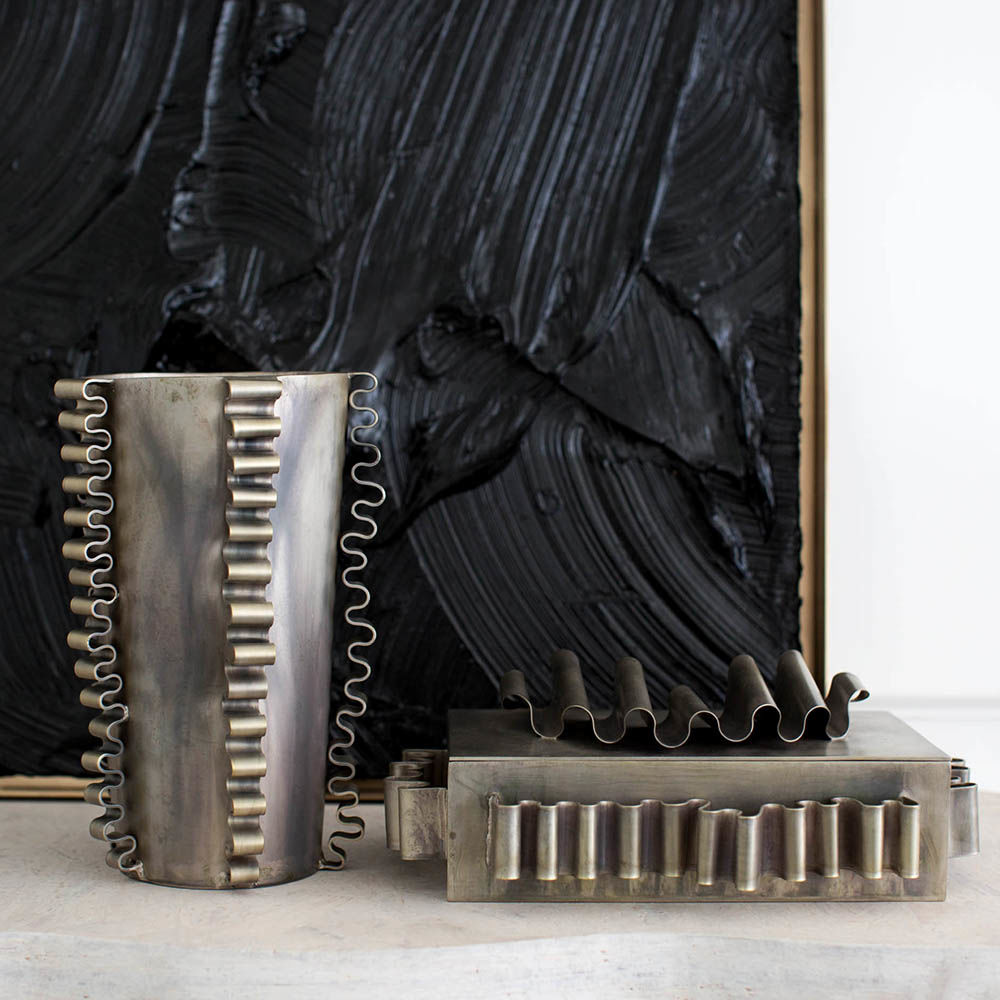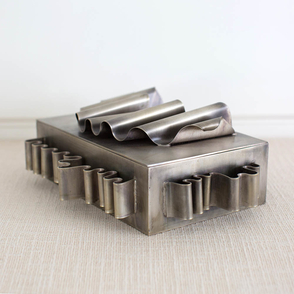 Avant盒子在我们的洛杉矶工作室手工制作,优雅衬里采用黑色皮革制成。 盒子采用酸洗方式,具有独特的银色光泽,产生真正独特的作品。