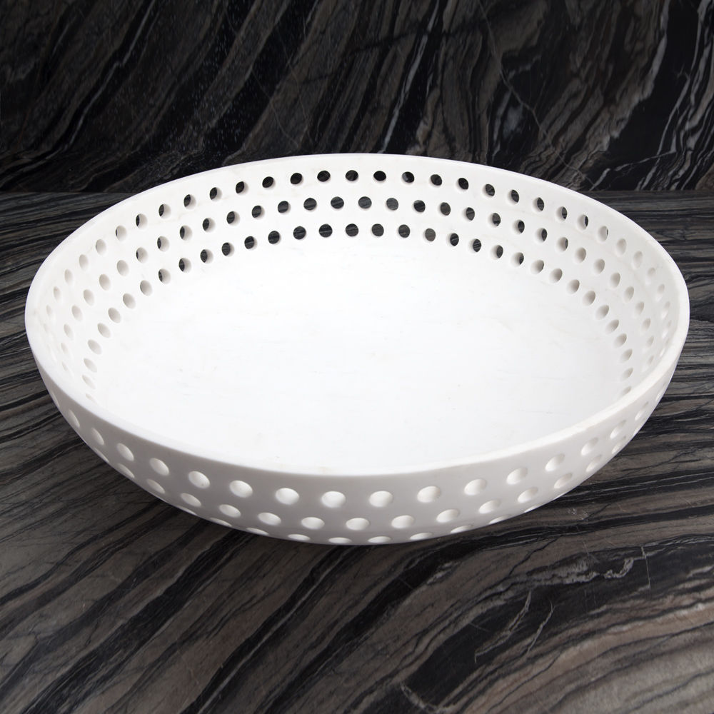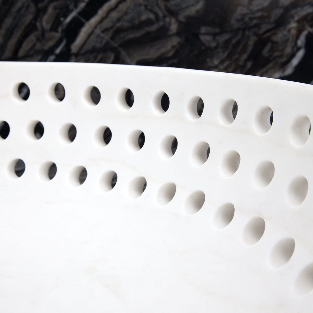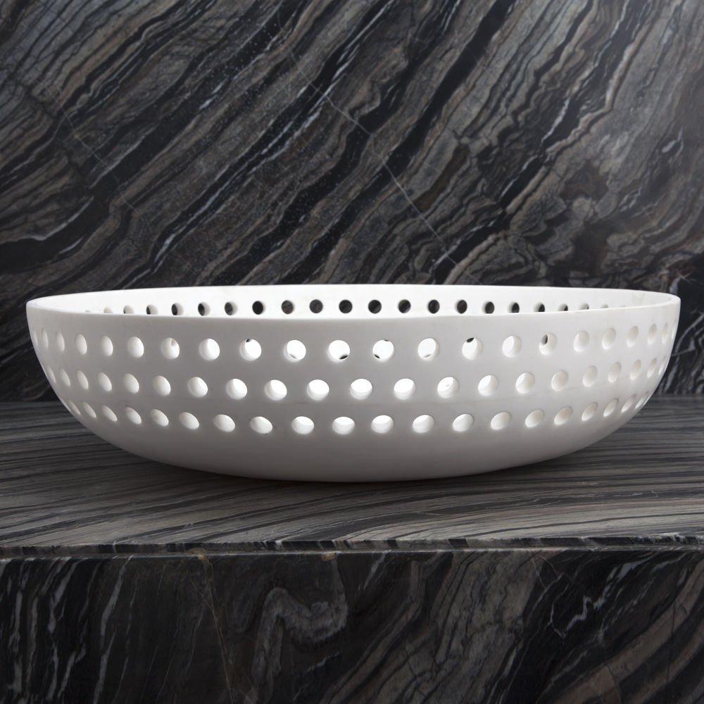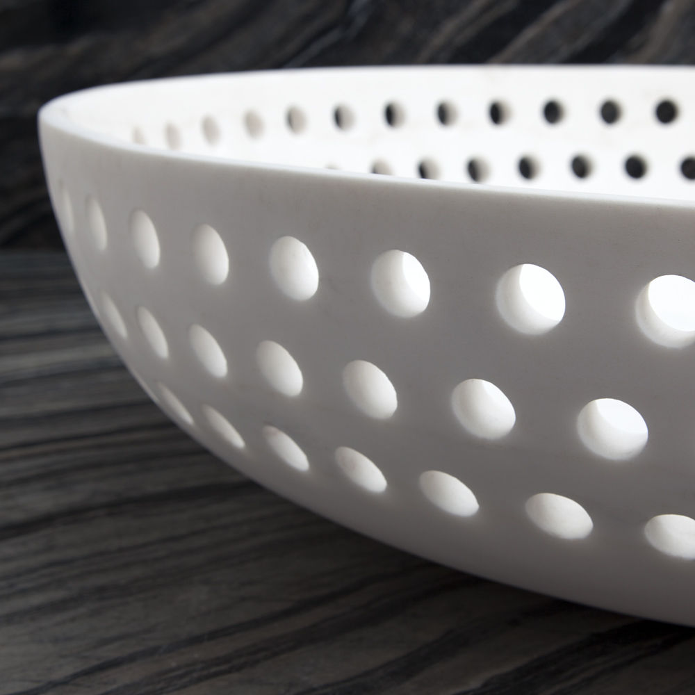 这只优雅精致的展示碗借鉴了凯利对对称的热爱,采用了她标志性的穿孔图案。由纯白的卡拉卡塔大理石组成,它使任何空间都显得别致。