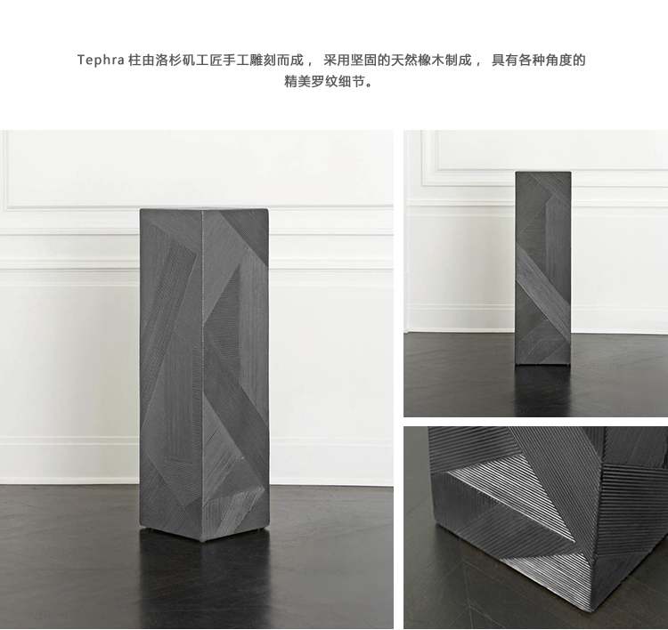 Tephra木柱由洛杉矶工匠手工雕刻而成,采用坚固的天然橡木制成,具有各种角度的精美罗纹细节。 该柱子采用深色乌木饰面,是您家中展示艺术或雕塑的完美高度。