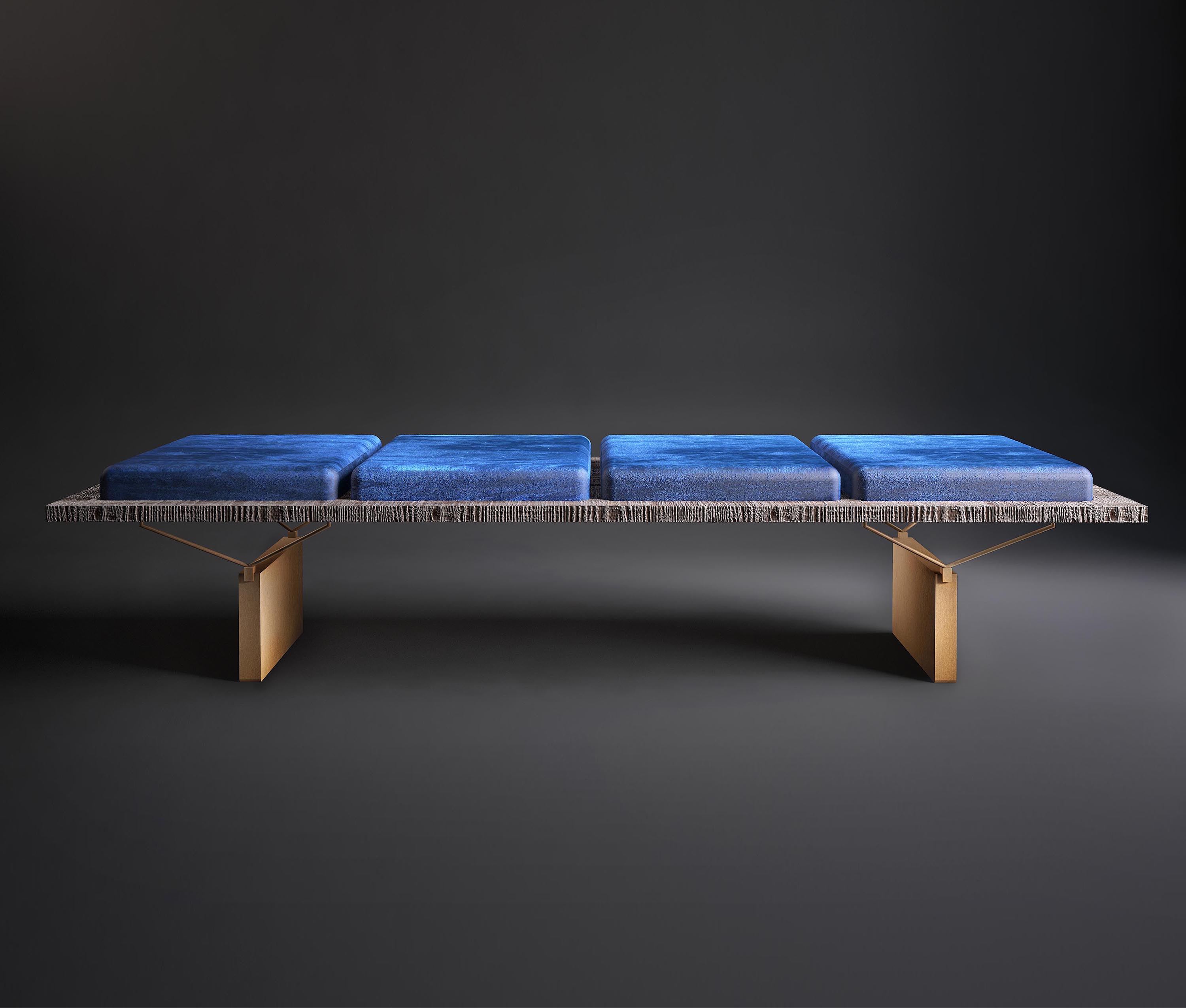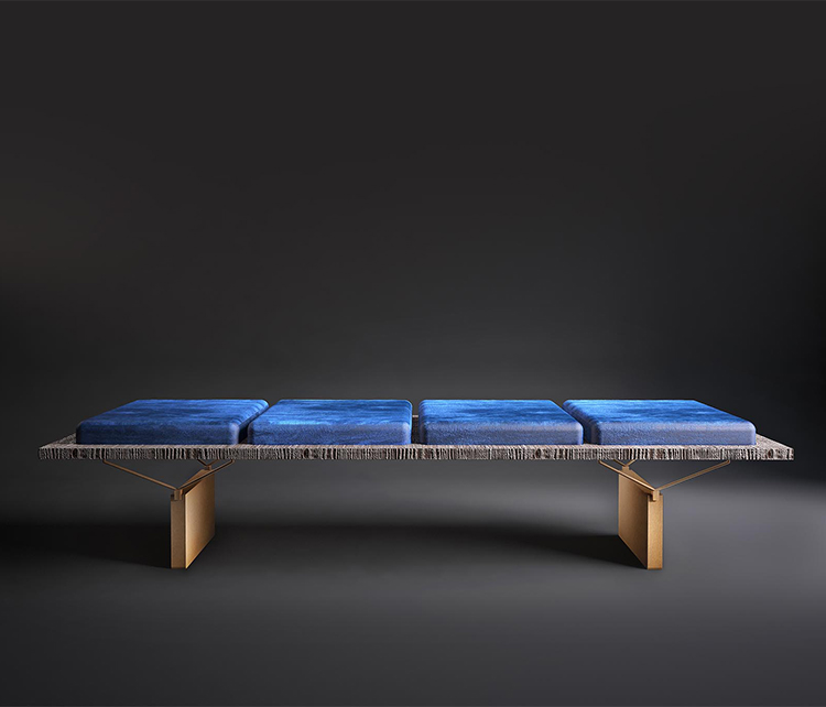 一个“没有多余装饰”的长椅,但却无法实现:通过在绒面革的柔软度和厚厚的蓝色垫子之间展现色彩,Stamford使原木座椅高贵。 薄的关节支撑着座椅,而抛光的金属腿为火狐官方网站增添了优雅和轻盈。