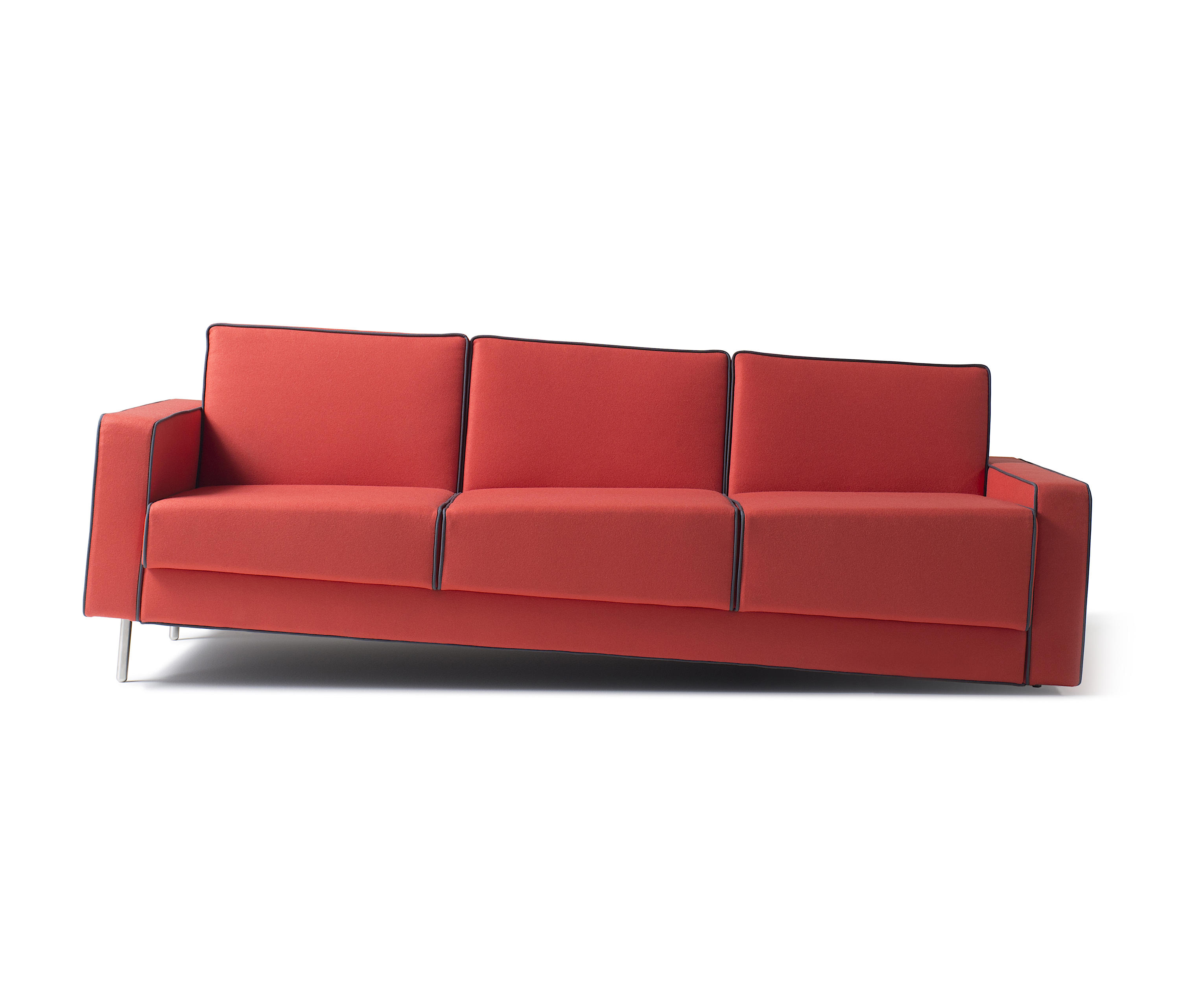 适应当代世界突然变化的精神激发了Fabio Novembre设计Adaptation系列的灵感。 一个引人注目的视觉冲击标志着这个项目与由靠背的斜线形成的视错觉,模拟下降效果。 不同高度的可变支腿系统和逐渐增大尺寸的垫子使座椅底座与地面完全平行,确保了舒适度。 沙发和扶手椅采用织物和皮革制成,采用以下对比色饰面,增强了物体几何形状:黑色,白色,灰色,红色,酒红色,空军蓝。