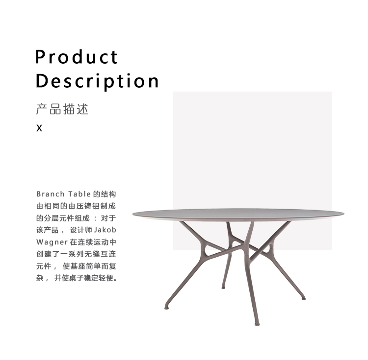Branch Table的结构由相同的由压铸铝制成的分层元件组成:对于该产品,火狐HUOHU(中国)Jakob Wagner在连续运动中创建了一系列无缝互连元件,使基座简单而复杂,并使桌子稳定轻便。