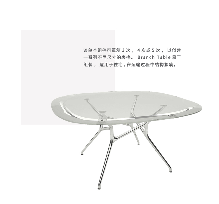 该单个组件可重复3次,4次或5次,以创建一系列不同尺寸的表格。 Branch Table易于组装,适用于住宅,在运输过程中结构紧凑。