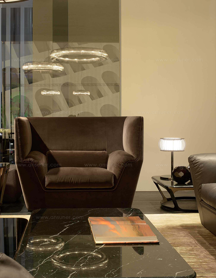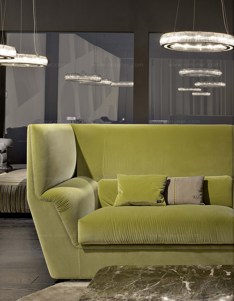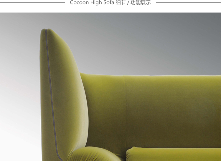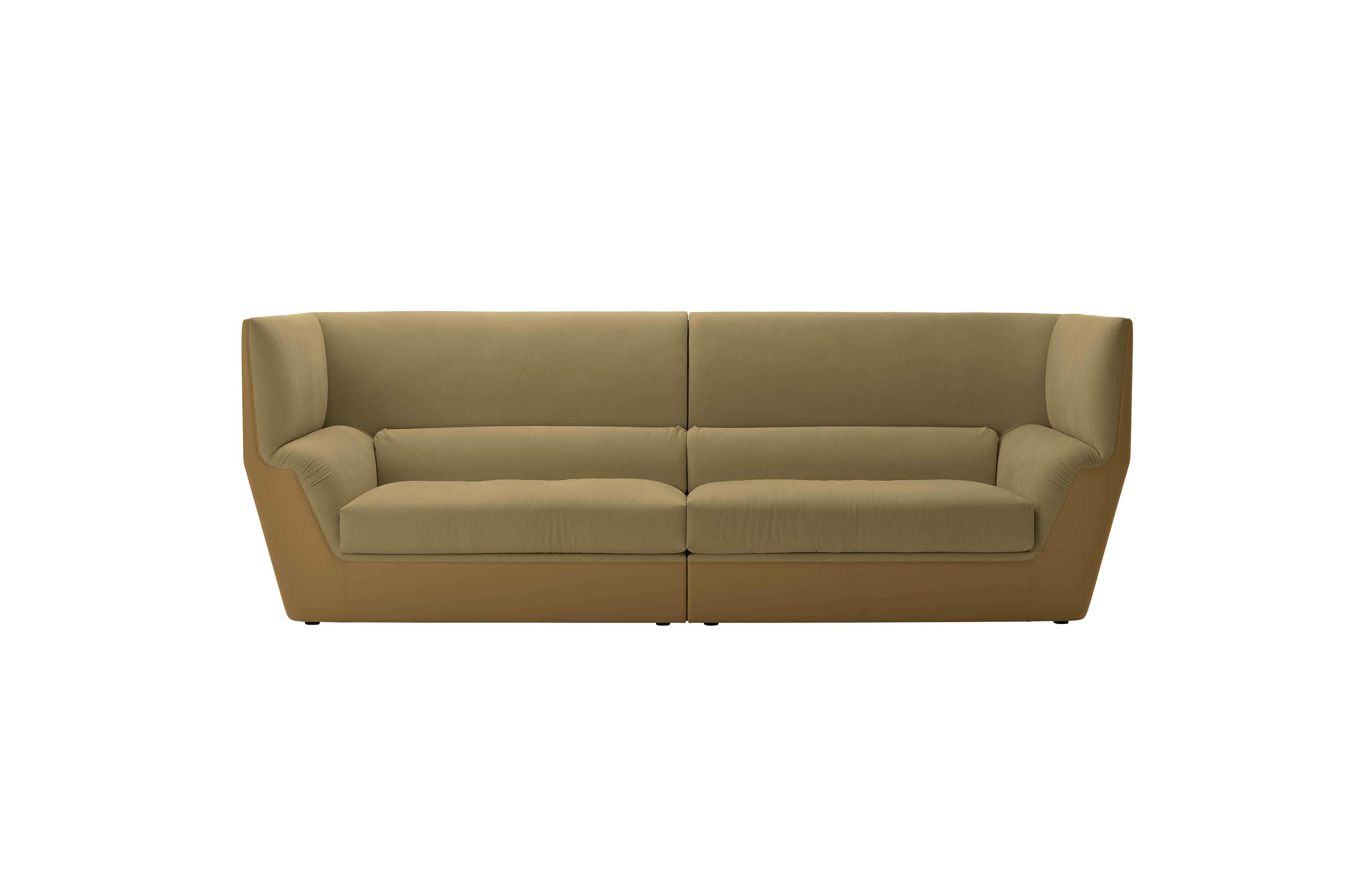 Cocoon stems from the will to create a very dramatic furniture collection, meant to become the protagonist of the ambience and at once an island of visual and acoustic intimacy. The sofa takes the characteristics of a true architectural space and grants remarkable privacy. The elements in the Cocoon family offer the opportunity to live a comfortable and cosy experience thanks to the softness and generous proportions.