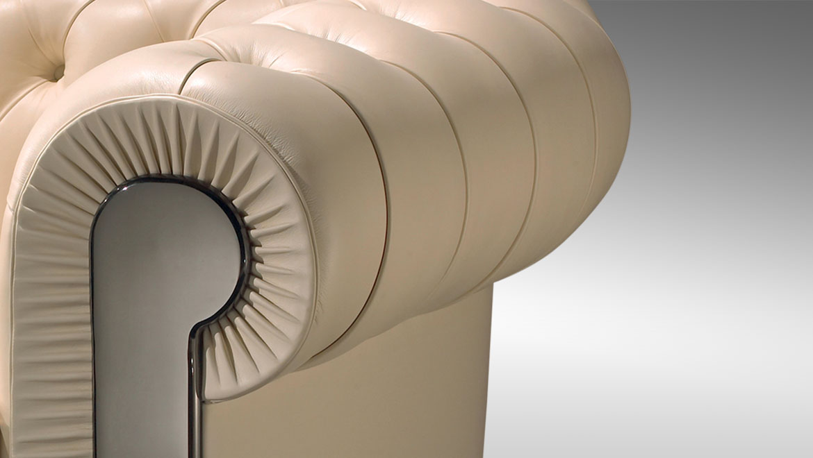 ARMS Two arm's frontal cover in leather or velvet (same leather or velvet) or: in leather crocodile, alligator, crocodile soft Superlux; steel with polished chrome, silvered, gun-metal grey or golden finishing coordinated to the bar in the base