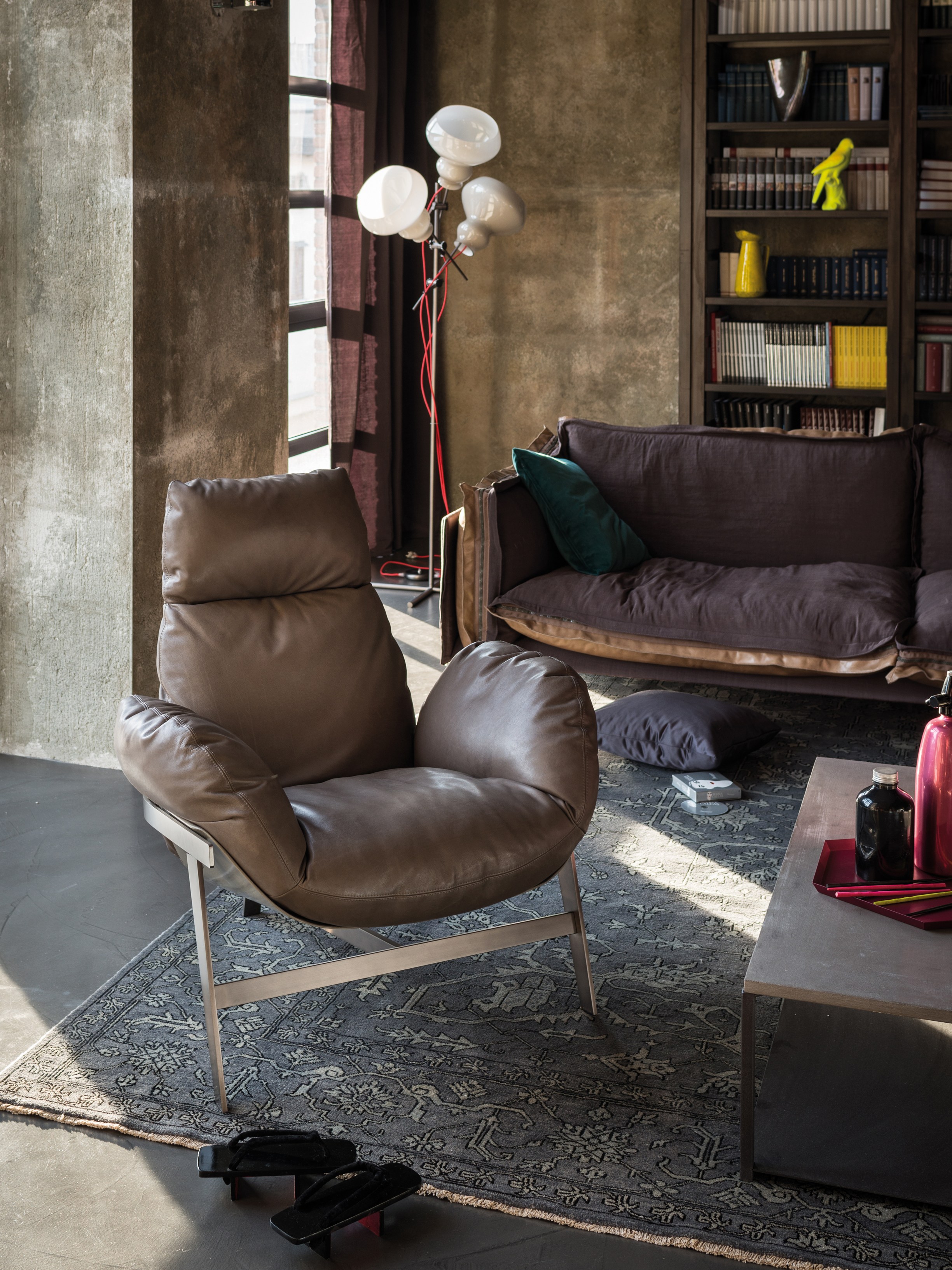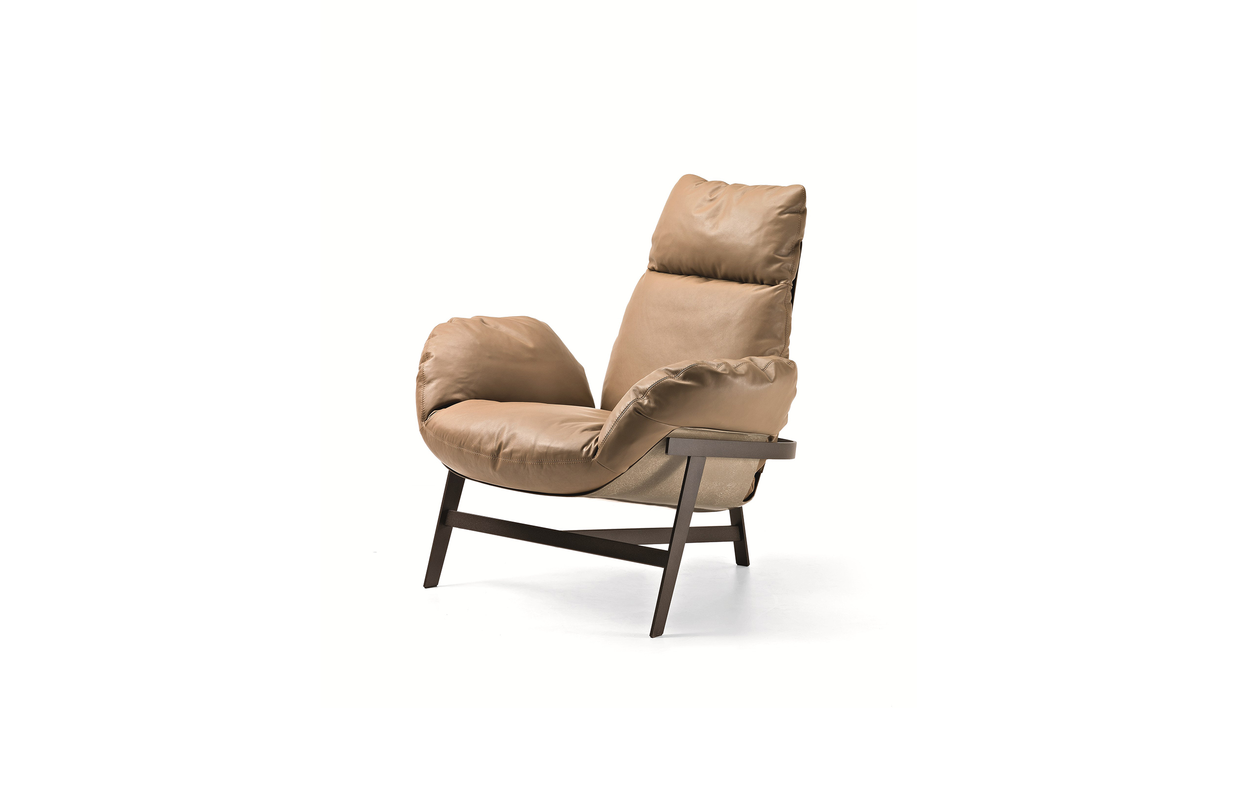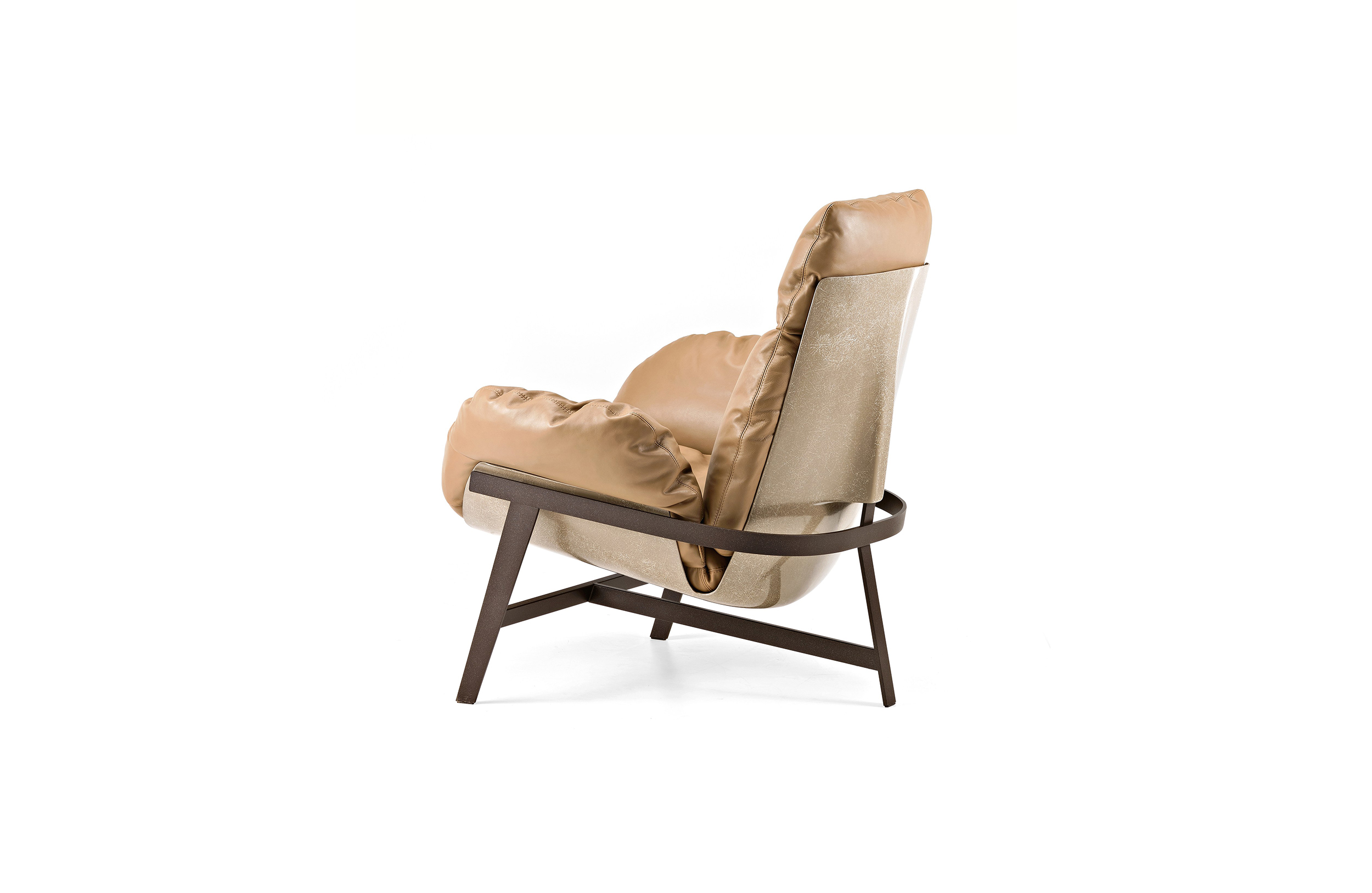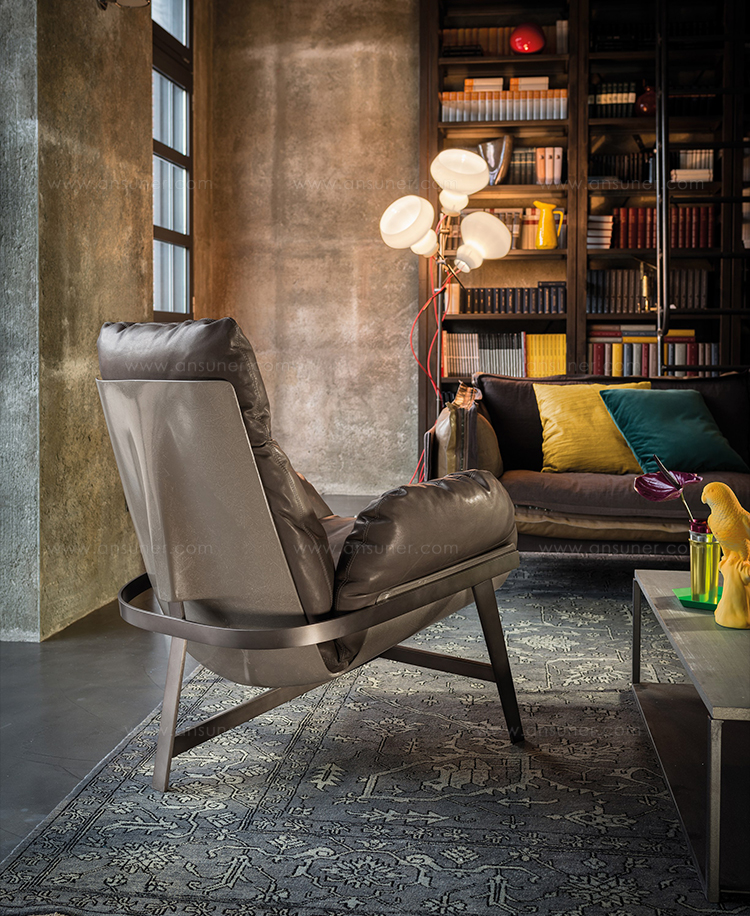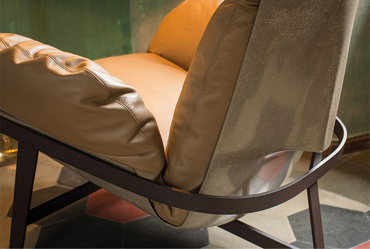 优雅而符合人体工程学的平衡。 动态稳定的温和。建筑配置突出了永恒的外观,并强调了个人使用材料的重要性。木星扶手椅有一个折叠的金属拱结构,由玻璃纤维外壳支撑着,填充的羽毛保证了高水平的舒适感。