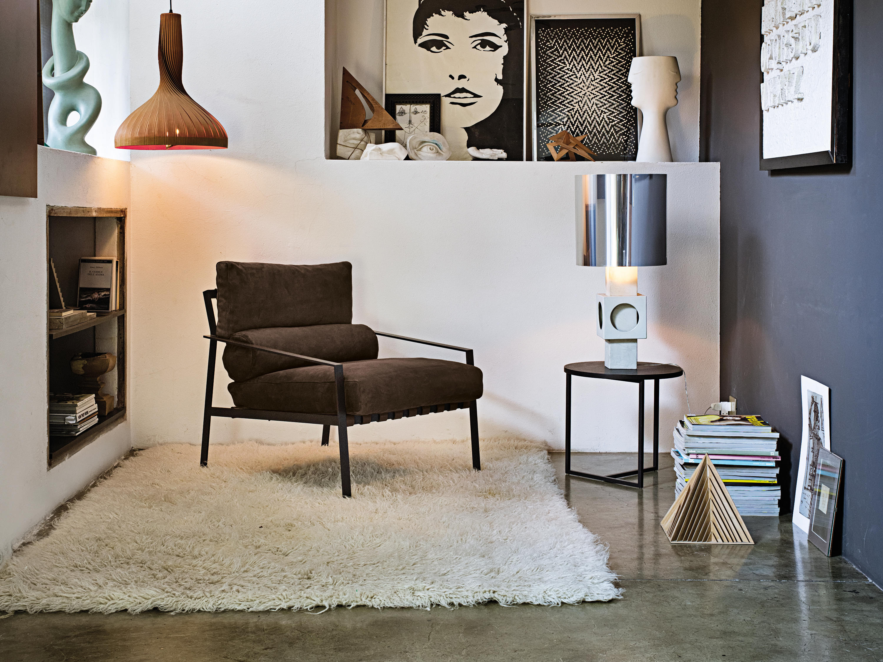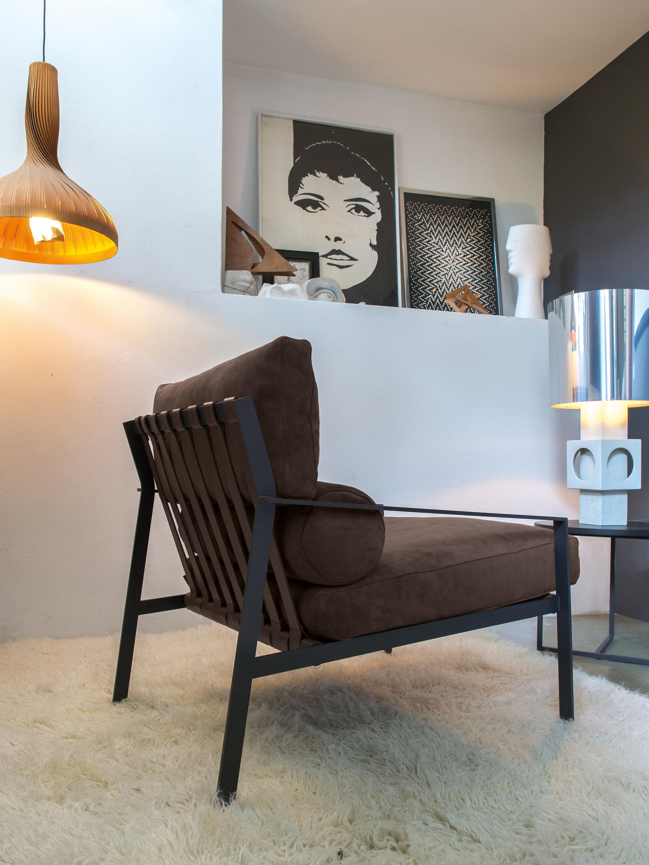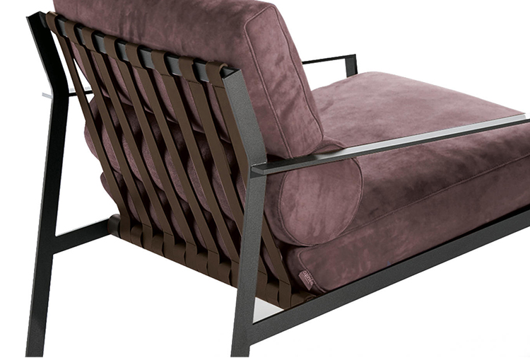 这是一种休闲椅,它的特点是用皮带支撑柔软舒适的垫子。其直线结构是高雅的现代生活方式的一种表达。这一结构有两种形式,一种是云母褐色的涂漆或黑色镀铬金属。