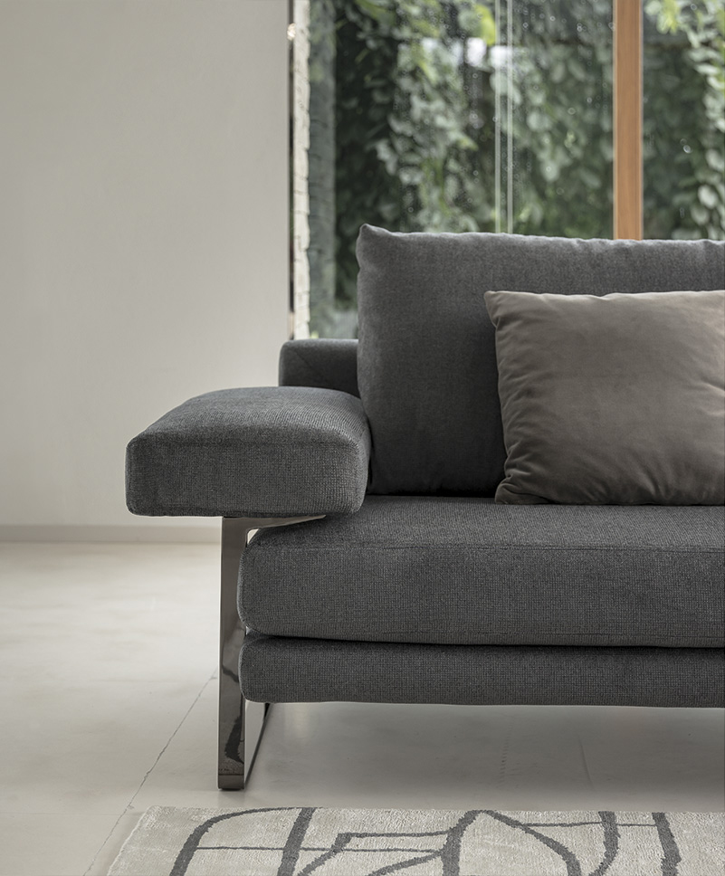 雕刻的几何线条赋予了它巨大的个性和独特的风格和最大的舒适感。超大号的座椅,后背和扶手都非常柔软。自我是20世纪80年代的沙发概念的最新阐述。脚,可在镀铬或云母褐色的金属上,支撑着宽阔的扶手。
