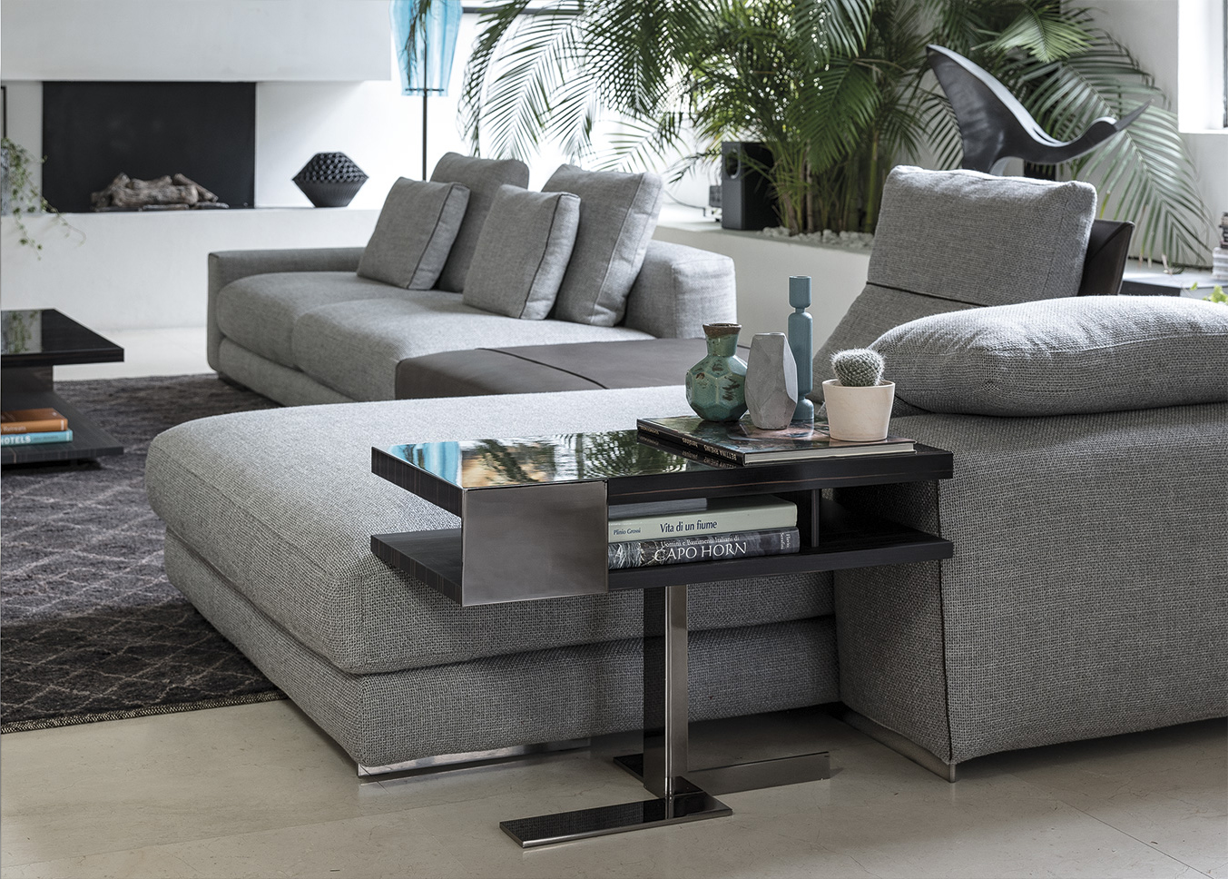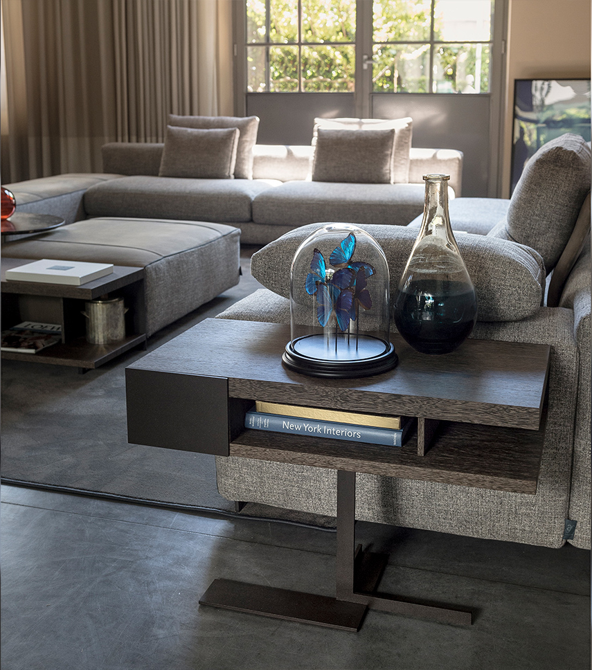 多种配件材料的爱尔斯是多功能的:可以放在墙边或沙发后面,而小桌子可以用作沙发扶手旁边的边桌,也可以用作服务桌。
