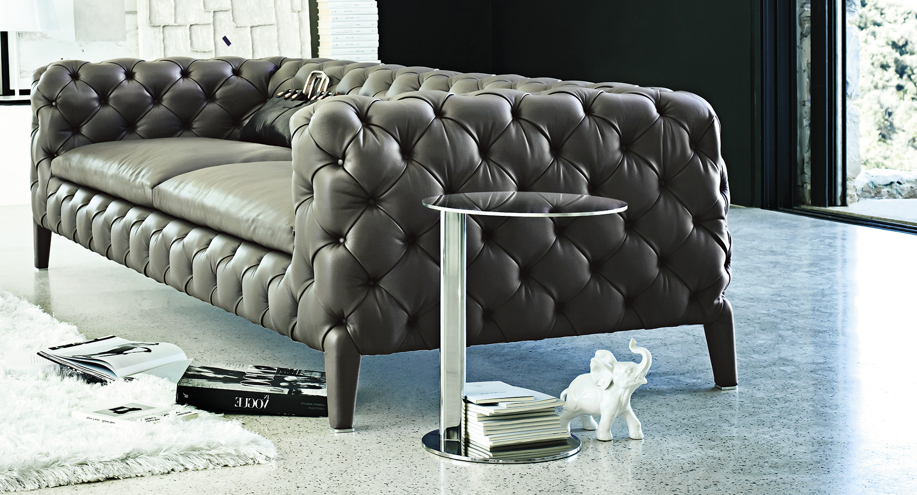 优雅的小茶几,由上下两个平行的不锈钢抛光圆盘和中间连接用于连接和支撑的镀铬金属脚组成。在Arketipo系列中,因为简单而精致的适用于各种类型沙发进行搭配。