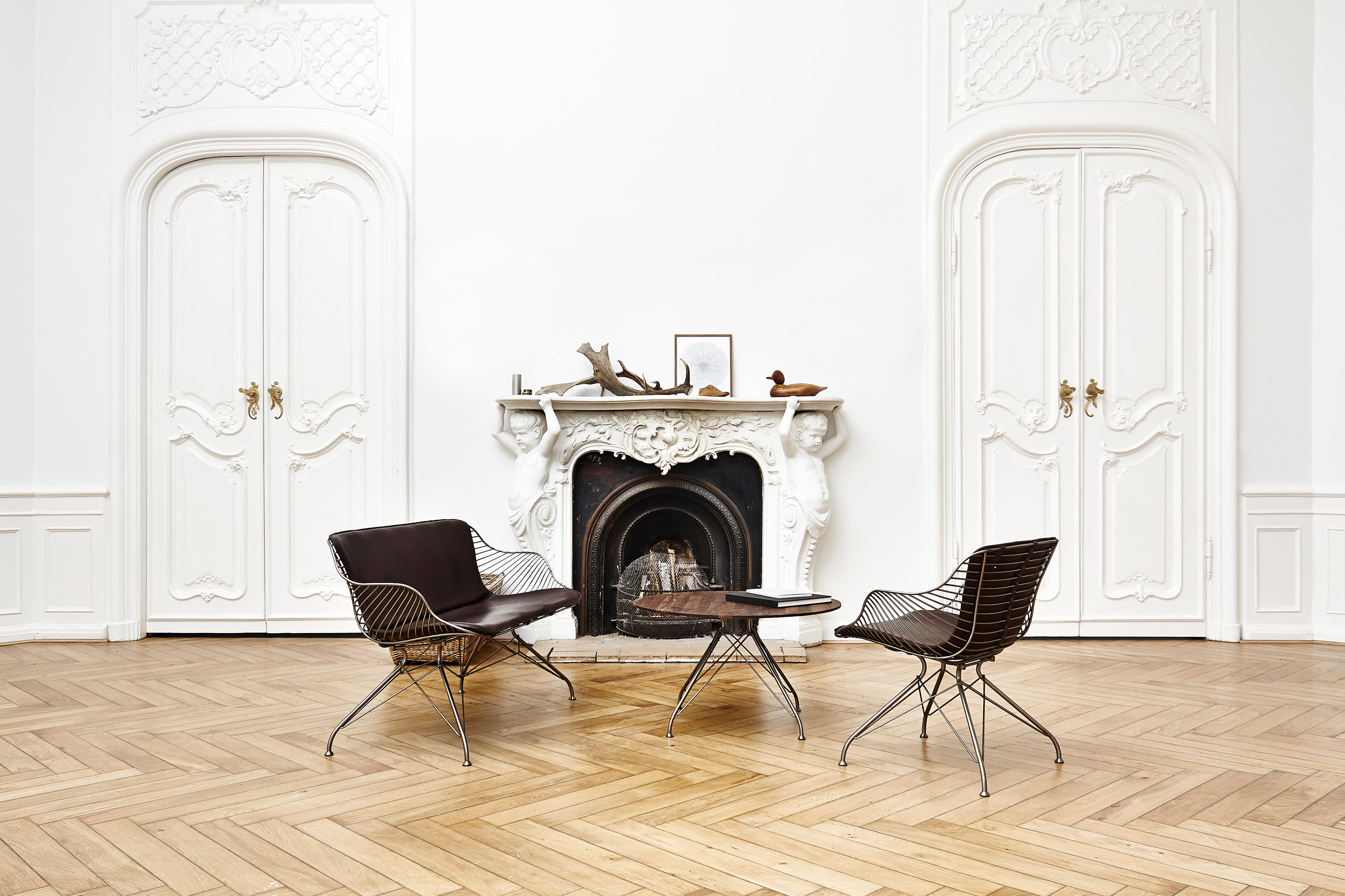 金属丝躺椅由Jasper Overgaard和Christian Dyrman设计。2014年设计的金属丝躺椅是一种更低、更宽、更平放的版本,与铁丝餐椅相比。