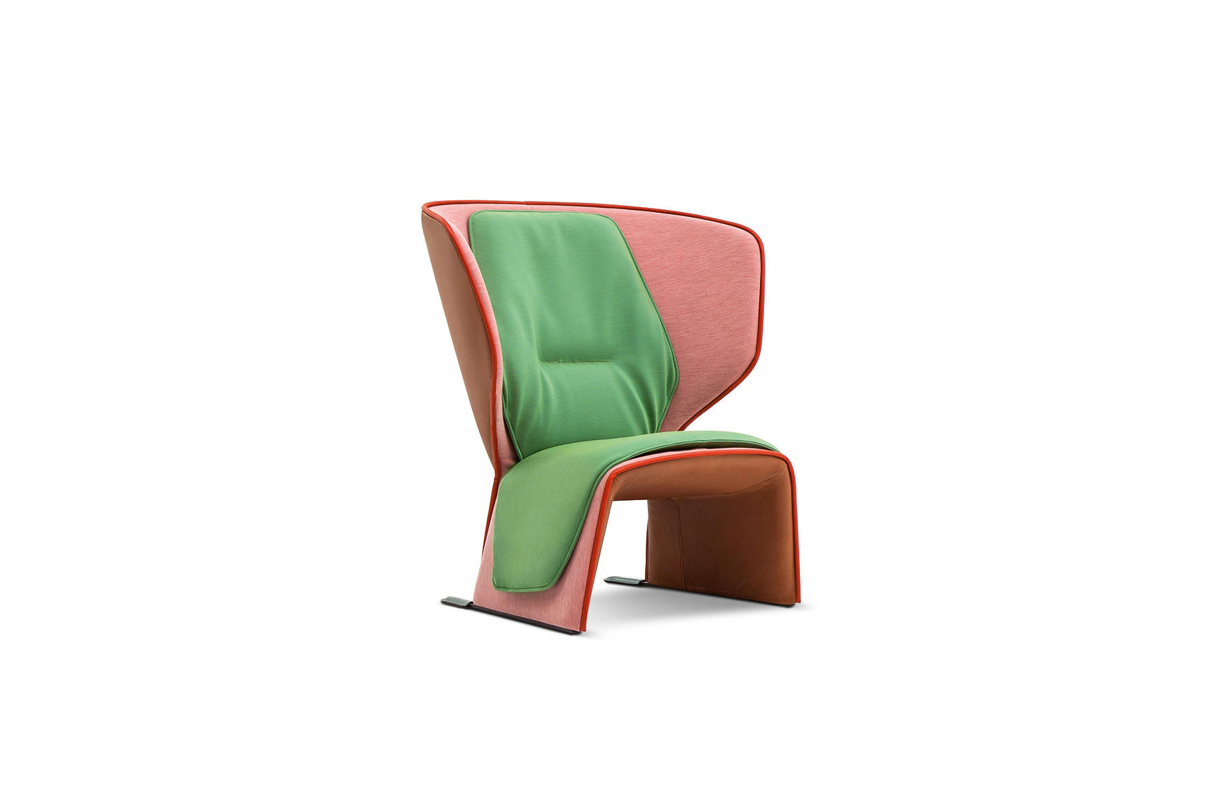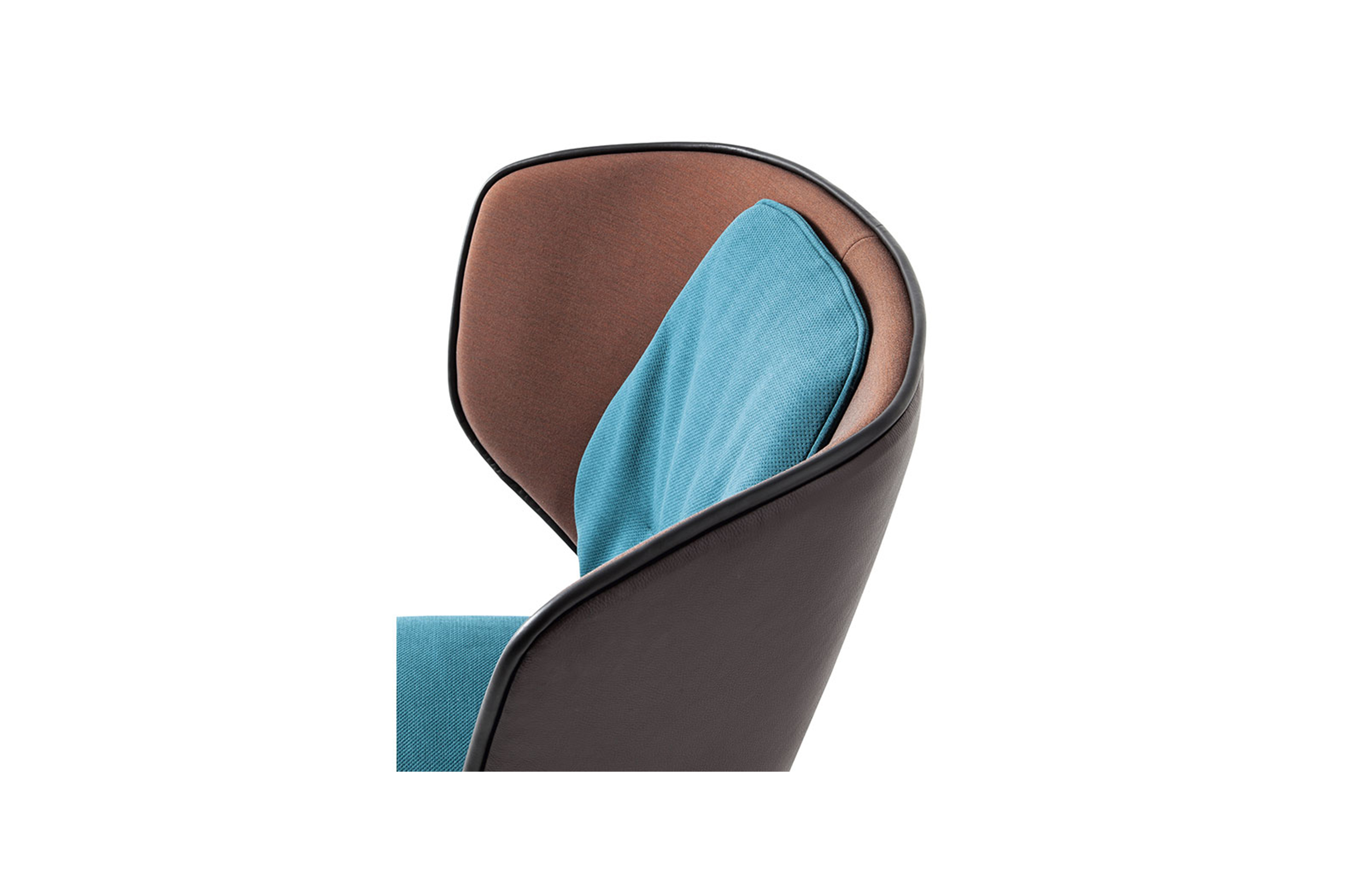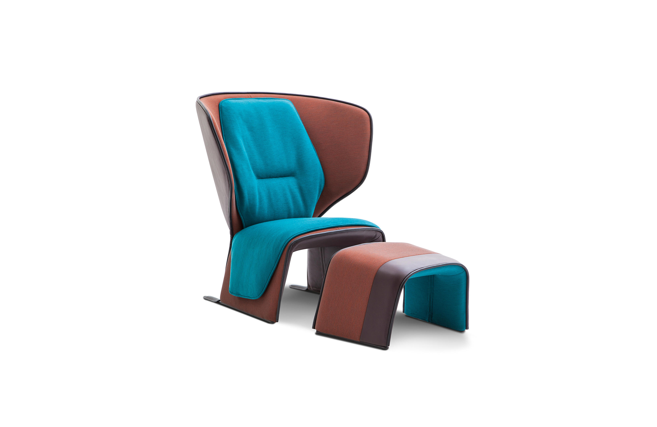 这款独特的扶手椅融合了传统和现代特色。其材料和颜色的组合适合多种用途:内部的软衬垫与外部的刚性元素和谐对话,染色皮革包边装饰突出了弯曲的线条。面料紧贴扶手椅的曲线,与外壳严谨、规整的结构形成对比,有五种不同颜色的标准组合。这款惬意的软包扶手椅的靠背在压力下可倾斜约12°,并可自动地返回到原来的位置,进一步增加了舒适感。结构:座椅和靠背采用钢管框架,并带有固定带。填充:密度可变无氟聚氨酯泡沫。底座:黑漆钢材,端部包覆黑色马鞍皮或闪光皮。软包饰面:布艺或皮革。