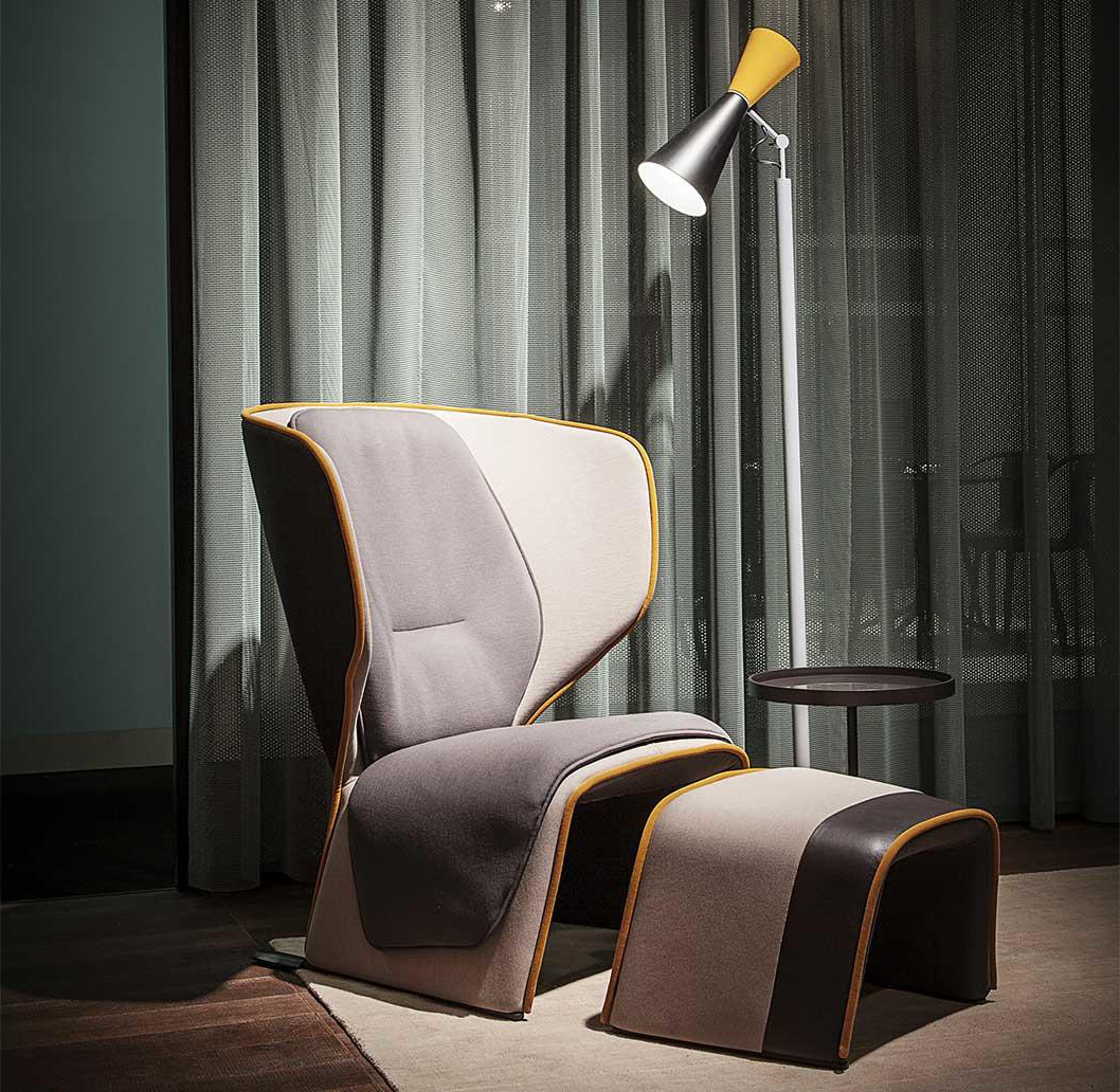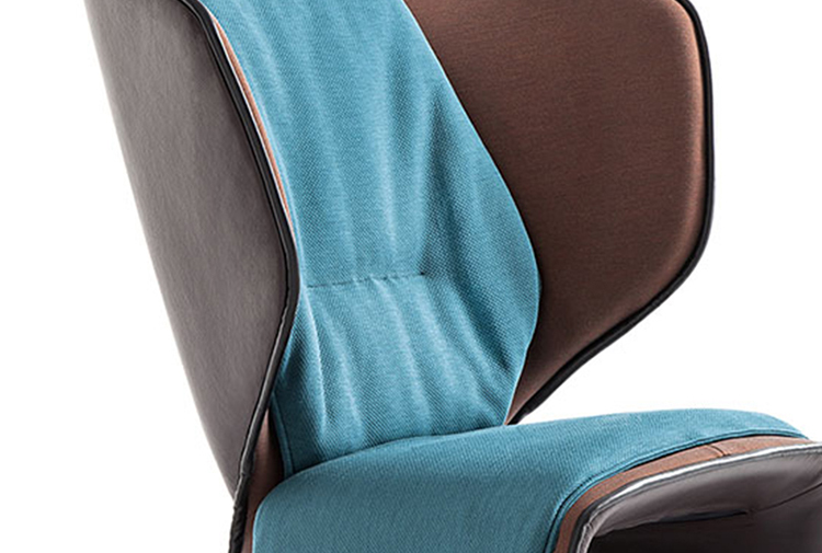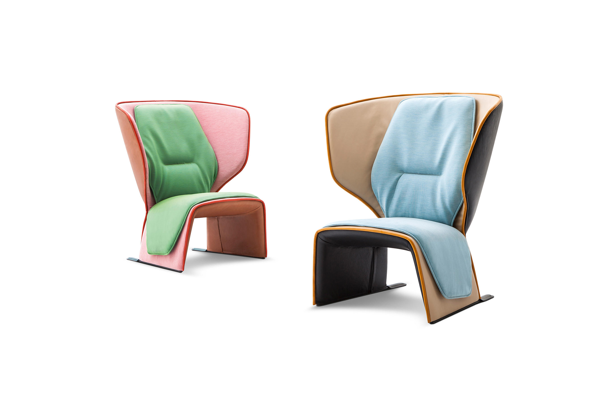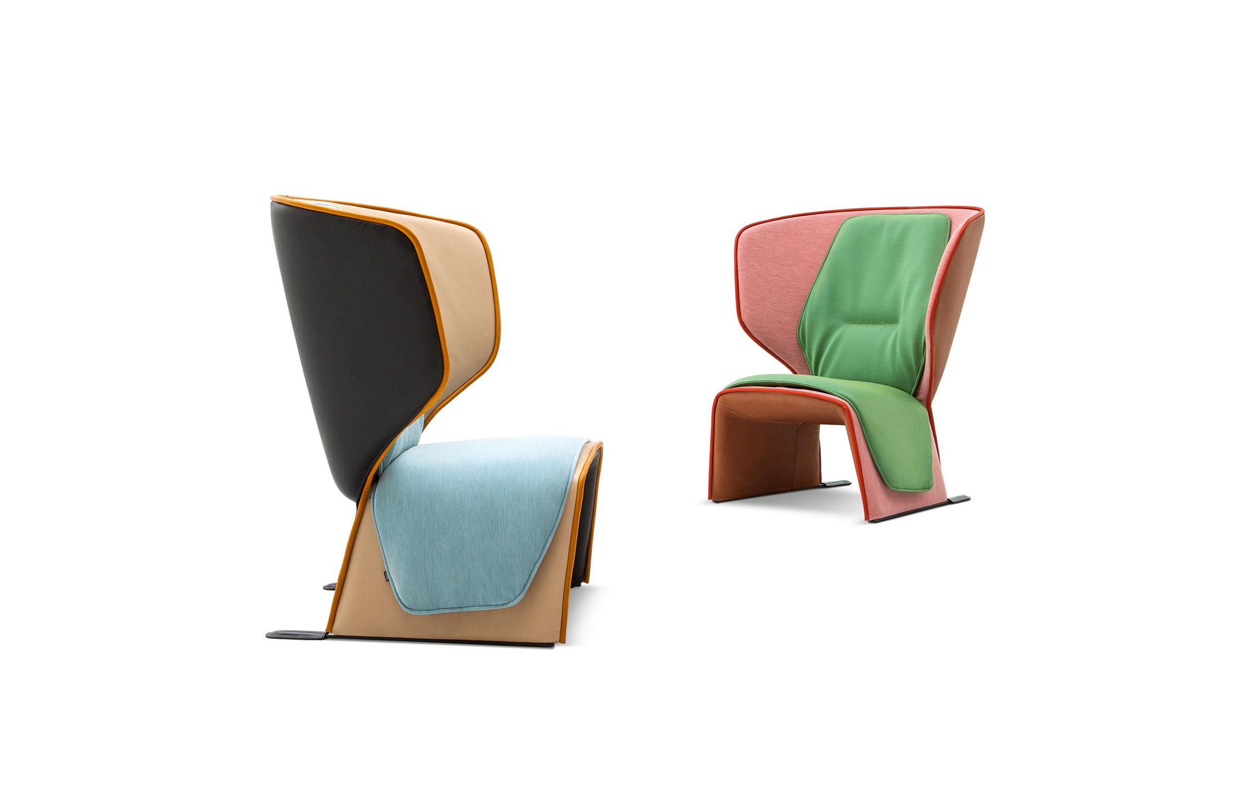 这款独特的扶手椅融合了传统和现代特色。其材料和颜色的组合适合多种用途:内部的软衬垫与外部的刚性元素和谐对话,染色皮革包边装饰突出了弯曲的线条。面料紧贴扶手椅的曲线,与外壳严谨、规整的结构形成对比,有五种不同颜色的标准组合。这款惬意的软包扶手椅的靠背在压力下可倾斜约12°,并可自动地返回到原来的位置,进一步增加了舒适感。结构:座椅和靠背采用钢管框架,并带有固定带。填充:密度可变无氟聚氨酯泡沫。底座:黑漆钢材,端部包覆黑色马鞍皮或闪光皮。软包饰面:布艺或皮革。