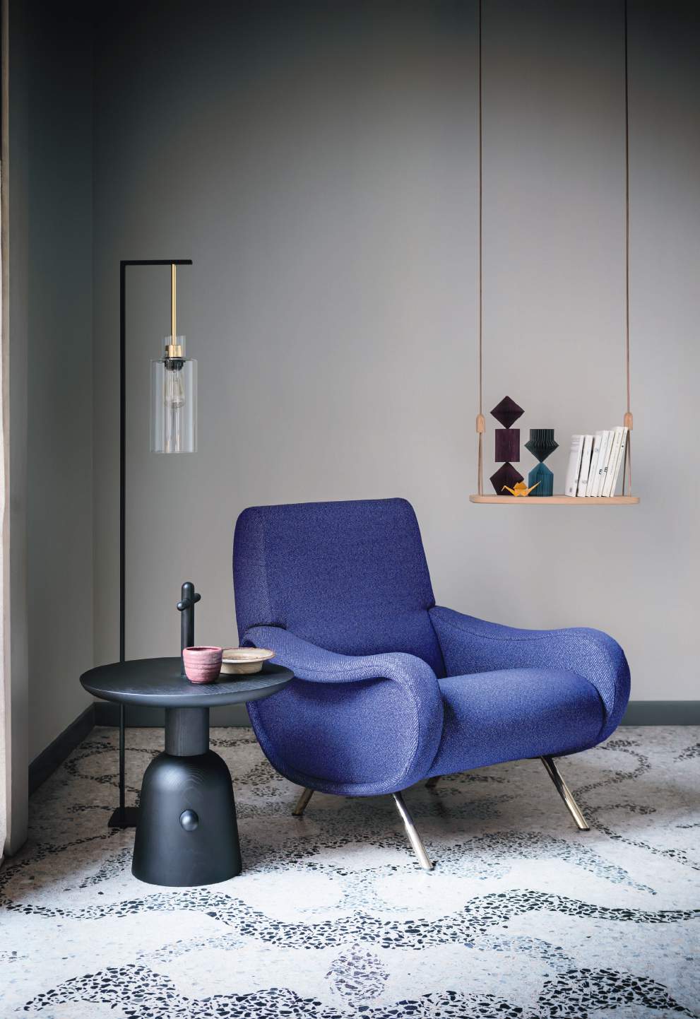 在1951年的第9届米兰三年展中展出该款扶手椅,在该展览中获得金奖,该款扶手椅是现代设计的标志。这款椅子是主要技术/材料创新(将橡胶、弹簧和弹力带放在一起)的产物,完全改变创造沙发和扶手椅的传统方法,单独制造部件,随后进行安装。