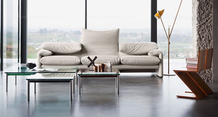 1984年改版的Charlotte Perriand LC10桌子。CR3三价镀铬钢结构涂哑光漆,有多种色彩选择:灰、淡蓝、绿、棕,泥土和象牙或黑色。玻璃台面有透明和纹理两种,15mm厚。也有户外版本。长宽高120x80x70cm, 看起来像是1929年巴黎秋季沙龙中参展的桌子,“居室的装置”的一部分。这款桌子最大地简化了框架,镀铬管状桌腿和喷漆的边饰都很极简,金属处理的表现力实现了桌子的完美效果。