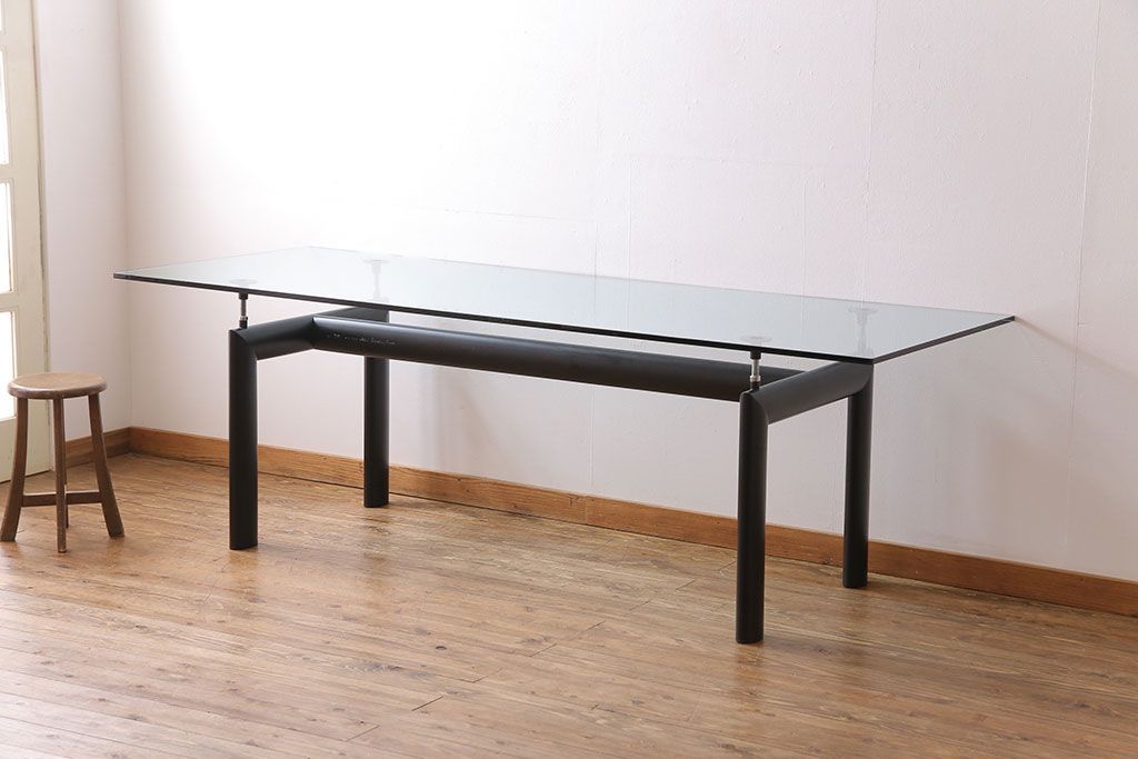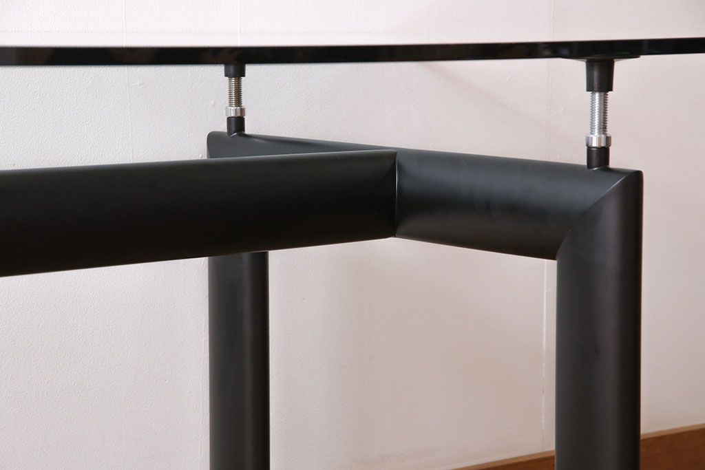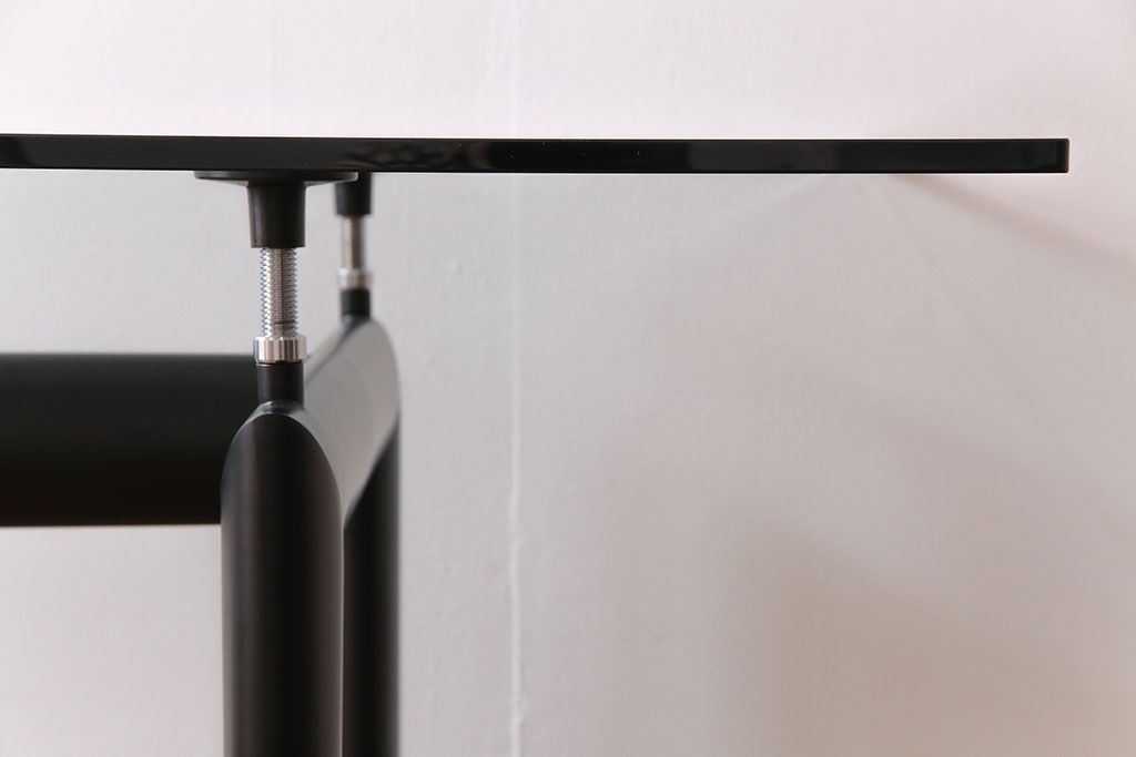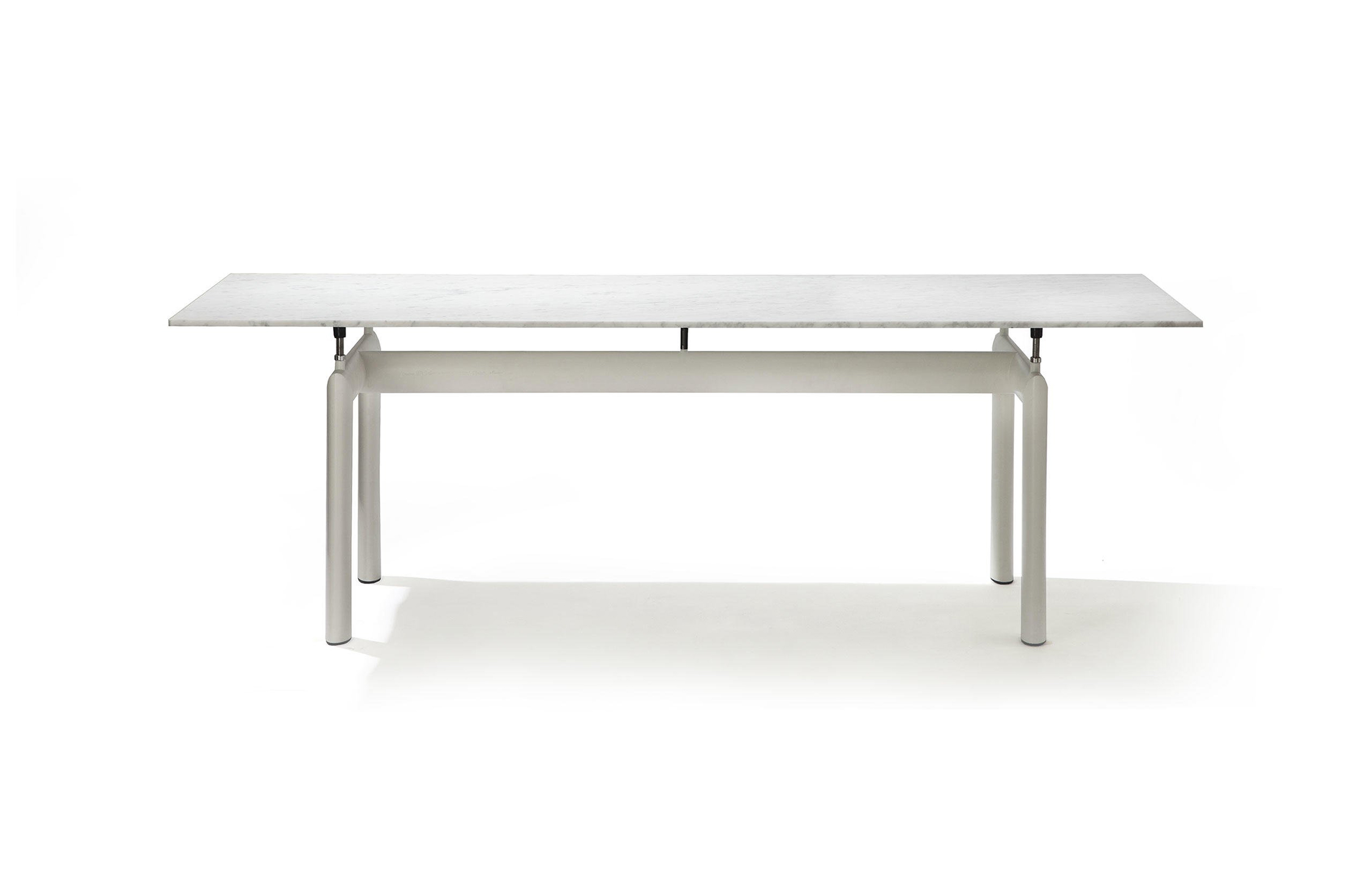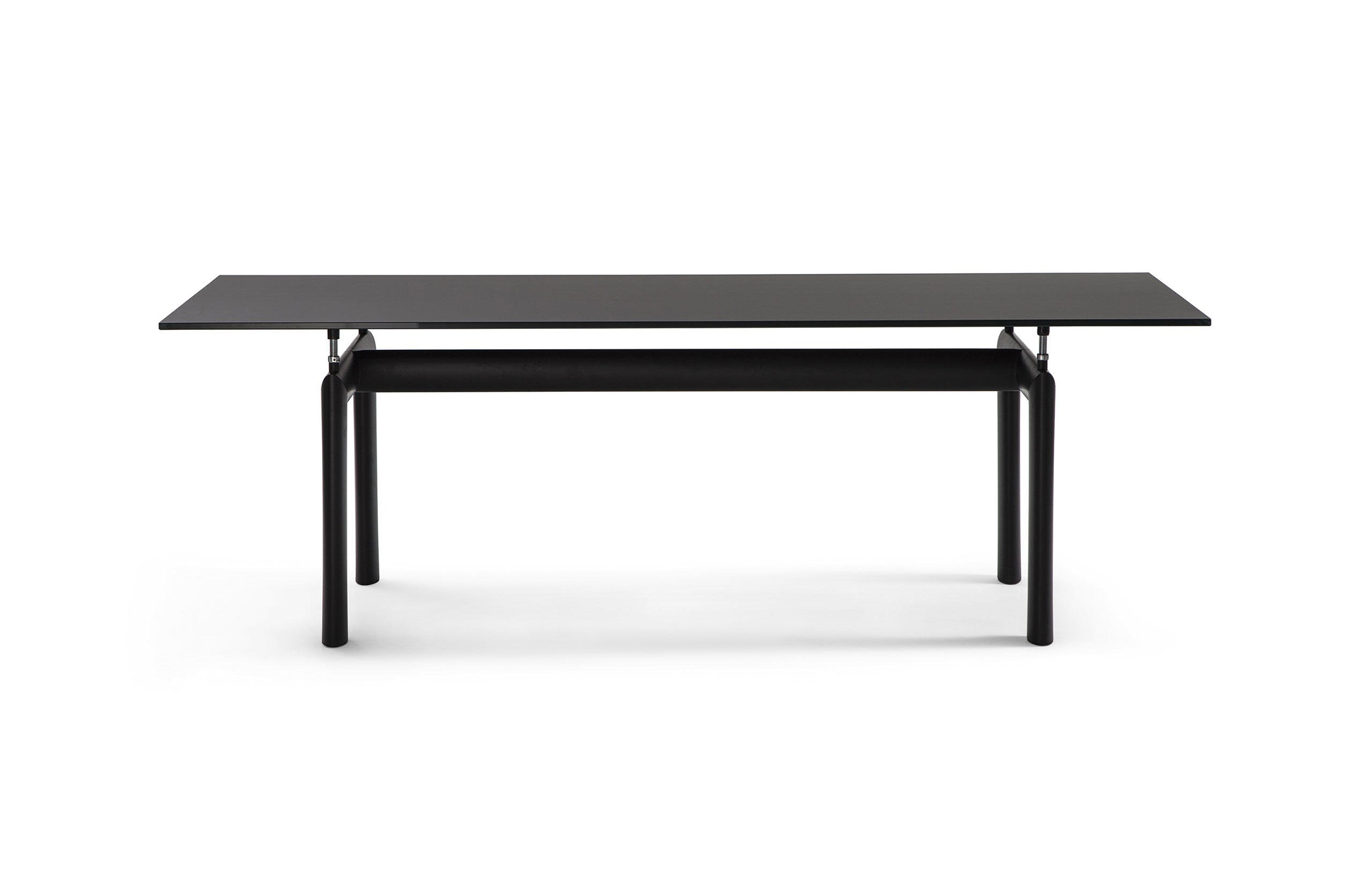 哑光灰色、淡蓝色、绿色、泥土色、象牙白色或黑色珐琅钢结构桌腿。桌腿采用带有钢螺纹杆的四个支撑点,高度调节量可达50mm,晶质网纹玻璃,天然或黑灰桌面。还有两个款式的珐琅钢桌腿和热成型玻璃桌面:哑光钢结桌腿、玫瑰烟灰桌面和哑光象牙白色桌腿、蓝色桌面。该款桌子的桌腿是于1928年使用航空业内用于维持机翼分离的卵形外观来设计的。在1929年巴黎秋季沙龙中展览的款式拥有玫瑰色印花玻璃桌面和绿色桌腿;随后,Charlotte Perriand还开发了蓝色桌面和象牙白色桌腿的桌子模型。