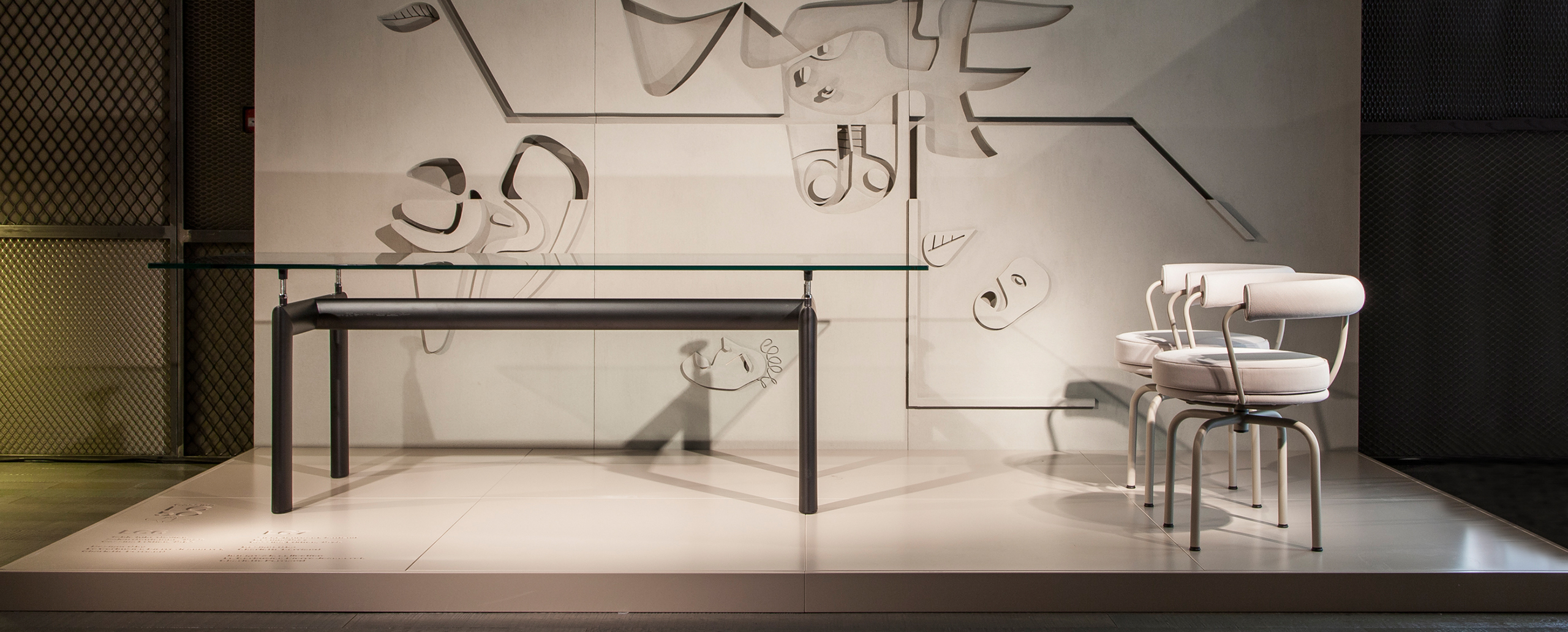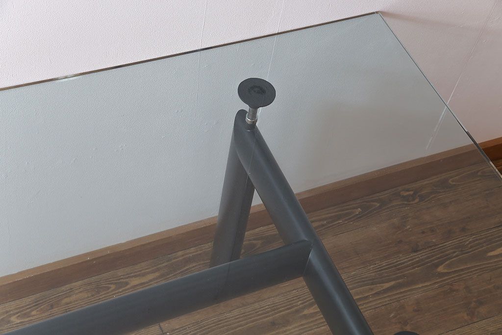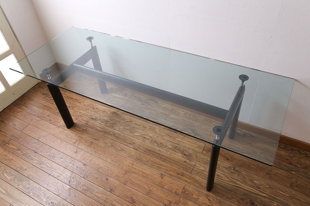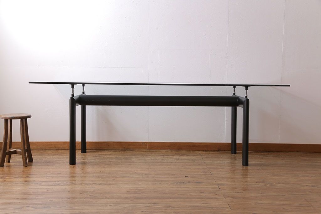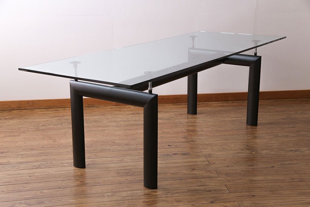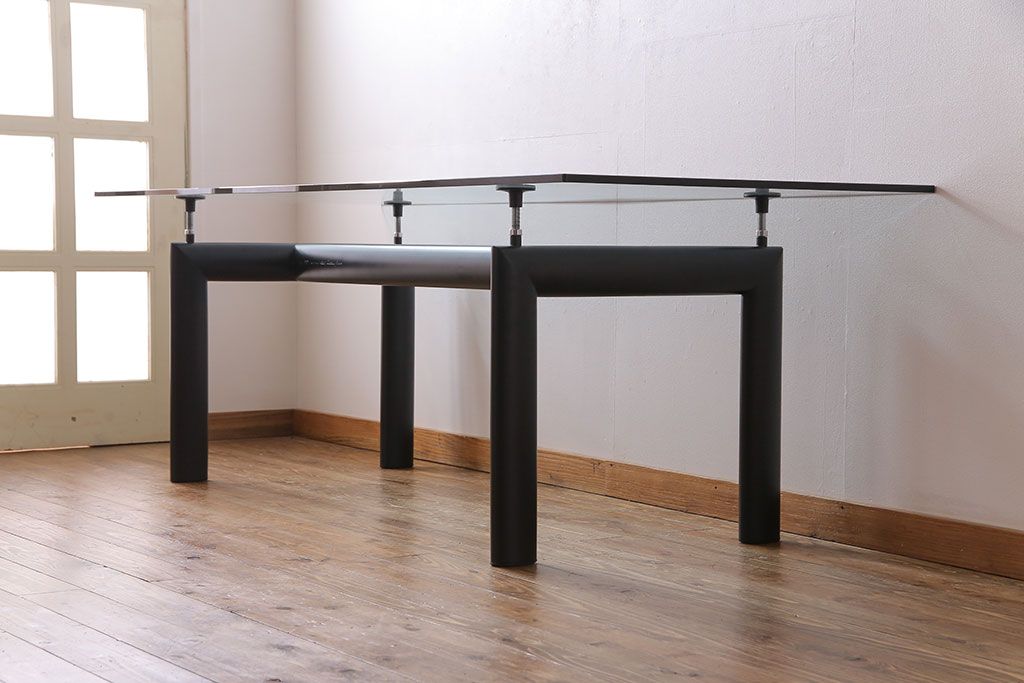 哑光灰色、淡蓝色、绿色、泥土色、象牙白色或黑色珐琅钢结构桌腿。桌腿采用带有钢螺纹杆的四个支撑点,高度调节量可达50mm,晶质网纹玻璃,天然或黑灰桌面。还有两个款式的珐琅钢桌腿和热成型玻璃桌面:哑光钢结桌腿、玫瑰烟灰桌面和哑光象牙白色桌腿、蓝色桌面。该款桌子的桌腿是于1928年使用航空业内用于维持机翼分离的卵形外观来设计的。在1929年巴黎秋季沙龙中展览的款式拥有玫瑰色印花玻璃桌面和绿色桌腿;随后,Charlotte Perriand还开发了蓝色桌面和象牙白色桌腿的桌子模型。