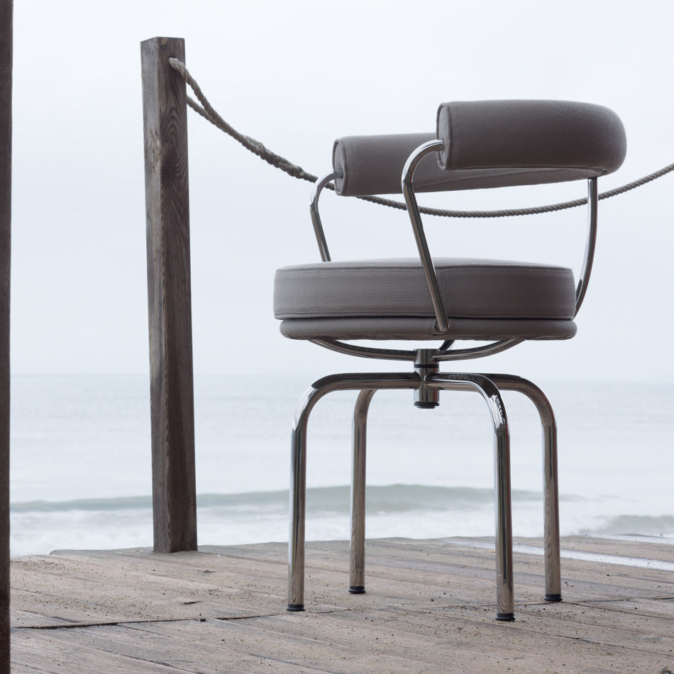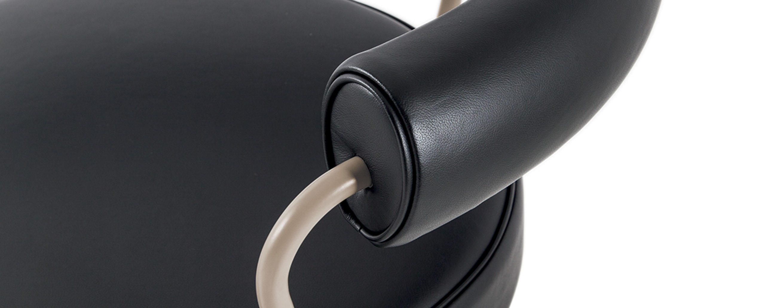 完全采用抛光AISI 304不锈钢制造的扶手椅。哑光黑色饰面的座面内部结构和靠背采用电镀槽预处理。银色和黑色PVC椅脚的运用等细节可确保扶手椅在各种天气条件下的最佳耐用性和可靠性。座垫采用排汗聚氨酯,可使迅速排出水汽,从而避免积水、发霉和变味。靠垫采用无CFC聚氨酯海绵和防水套面。户外太阳伞吊带面料使用PVC高韧性涤纶纱。 面料经加工可再现传统装饰套面。面料有5种颜色。每件扶手椅都配有冬季防水保护套。