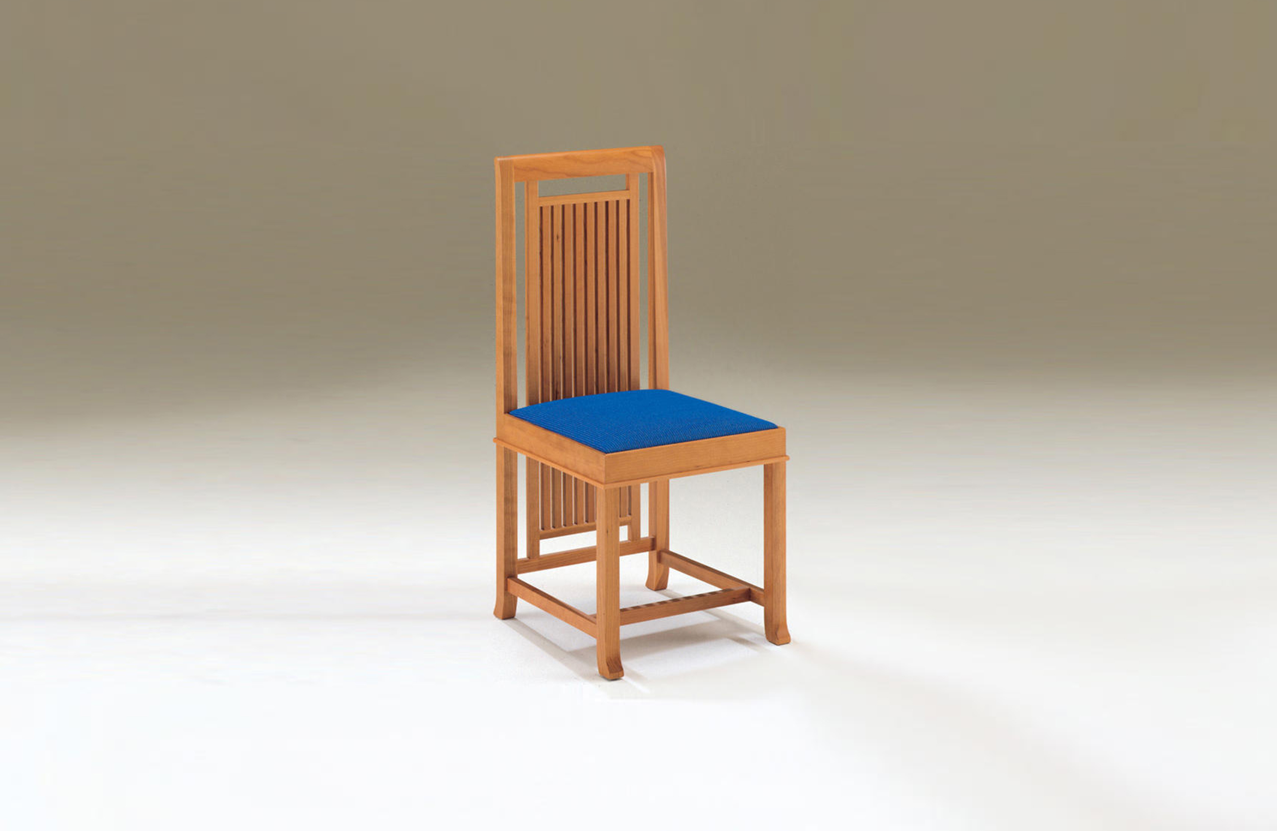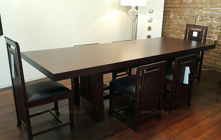 靠背椅,采用天然樱桃木、樱桃木色或黑色胡桃木制造。座垫采用聚氨酯海绵填充,皮革及布艺面料软包。
