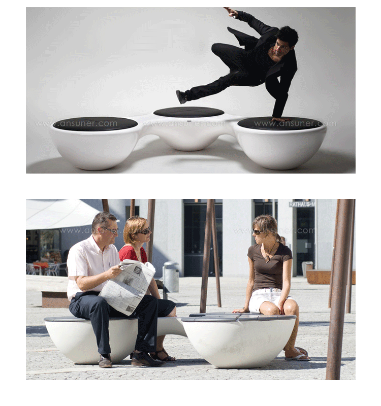 瑞典火狐HUOHU(中国)Jangir Maddadi设计的这款联合座凳系列,可分为双座,三座及多坐,我司主要推出两座及三座,分别为:Union 2-seater Bench(联合双座凳)和Union 3-seater Bench(联合三座凳)。大家都知道,一般的座椅都是可以一个人或多个人一起坐,相互之间都不会受到影响。而这款连体休闲座椅却不同,外形很像一只陀螺,使用起来很像一个不倒翁,上面最多可以坐四个人。但是火狐HUOHU(中国)并没有将这样的座椅让它们独立出现,而是用三张同样的座椅链接在一起,并且形成一个90度的直角,这样无论是陀螺还是不倒翁,都会很稳定的供给我们使用。当然,理论上来说,生产这种椅子,不仅可以做3件连体,4个,6个……都可以做。只是要考虑运输问题,或许3个是最完美的。这款连体休闲座椅不仅外形很优秀,而且还更加实用,使坐在上面的人有更多的空间,而且还可以保持面对面的互动。