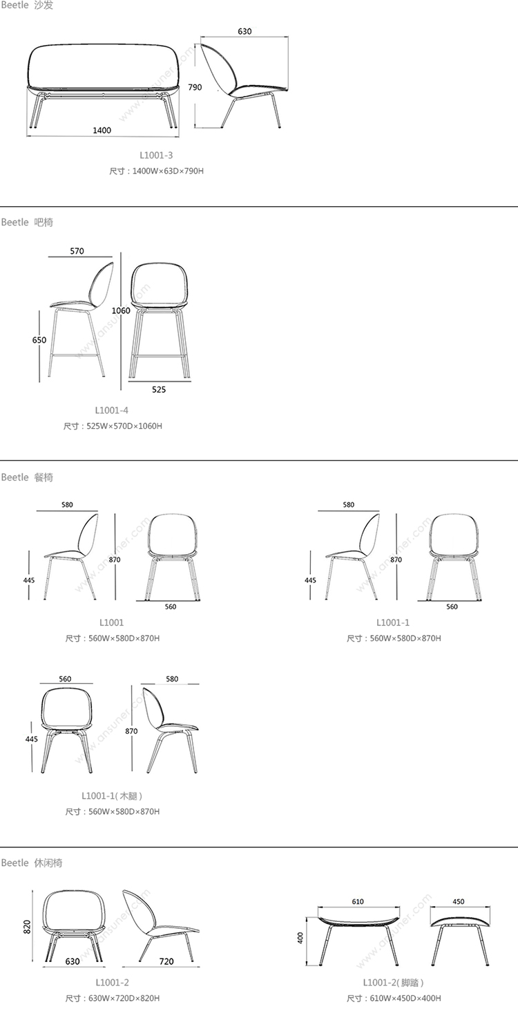 从甲壳虫沙发椅子中得到灵感,细长的甲壳虫沙发有一个圆形、保护性的外壳和一个柔软的内部——就像甲壳虫一样。两人座的甲壳虫沙发与环绕的外壳和柔软、诱人的内饰形成对比,鼓励人们坐下。