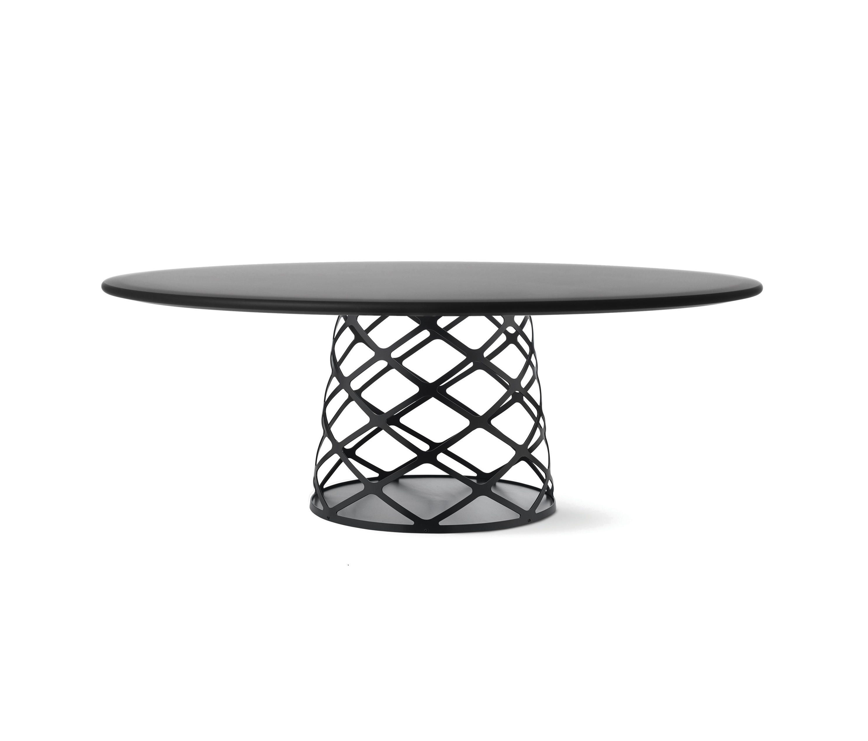 青山(Aoyama)是东京的一个社区,以其时装屋,餐厅和购物而闻名,是Paul Leroy为他的青山桌寻找灵感的地方。 该表系列在激光切割钢板中使用几乎透明的基柱,使桌子具有视觉亮度。 单基柱表可以支撑圆形桌面,而两个基柱可以支持带圆边的矩形桌面。