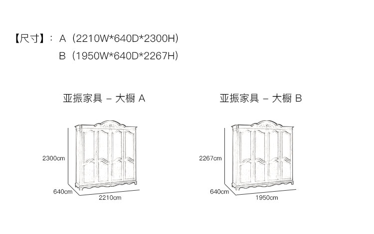 亚振火狐官方网站 - 大橱/衣橱 产品尺寸/示意图