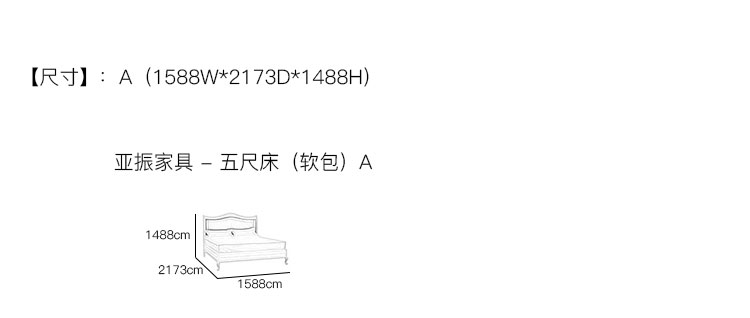 亚振火狐官方网站 - 五尺床(软包) 产品尺寸/示意图